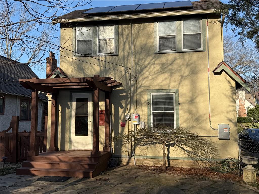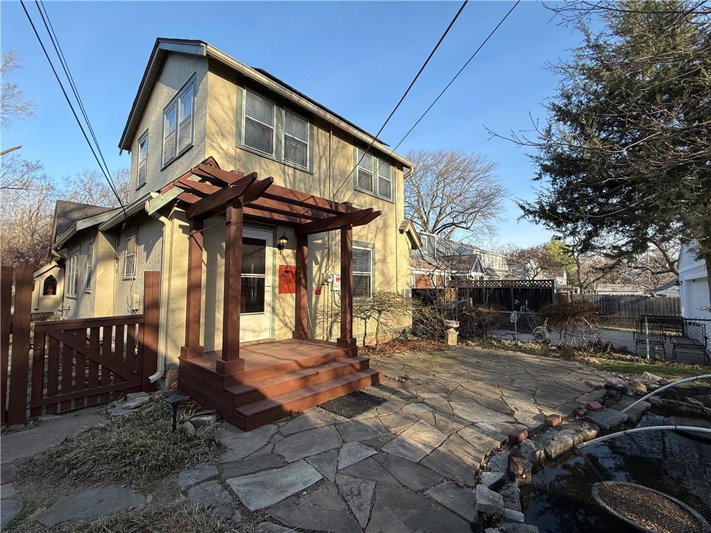Phone photos uploaded to give you an idea. Professional photos 3.20 and uploaded 3.21. This classic Tudor retains its original charm with nicely updated spaces and hardwood floors throughout. The screened front porch is a favorite — a comfortable place to read, visit with friends, or watch the neighborhood activity go by. Inside, the living spaces feel warm and welcoming, with great natural light and a layout that works well for both everyday living and entertaining. The kitchen and baths have already been updated, and the main-level bath was recently remodeled. The living and dining rooms were just repainted, a utility sink was added in the basement for convenience, and solar panels are installed to help reduce utility costs. The backyard feels like a tucked-away garden with its pond, gentle cascading waterfall, thriving water plants, and established landscaping. It’s a peaceful, private setting, and the new deck added in 2025 gives you even more room to relax or host friends outdoors. Located just minutes from Waldo restaurants, coffee shops, and neighborhood favorites along Wornall, with easy access to Brookside and the Trolley Track Trail. A great spot if you enjoy being close to local places while still having a home that feels like your own retreat.