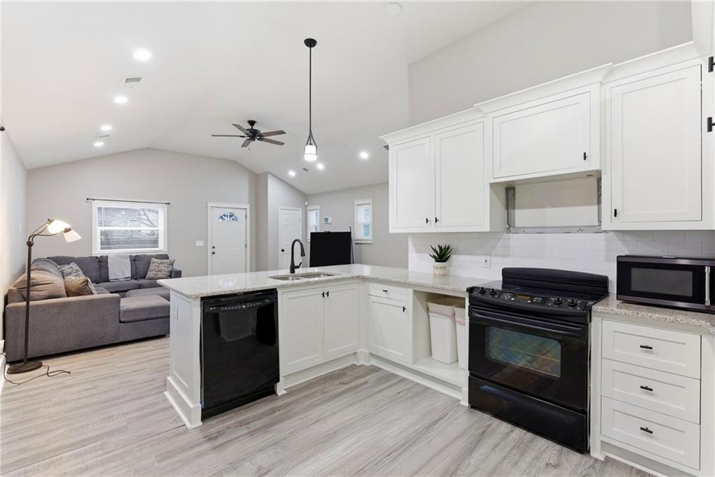 This adorable bungalow lives far larger than its footprint thanks to an open, well-designed floor plan. Step inside to soaring ceilings and a spacious living area that flows seamlessly into the dining and kitchen spaces. Durable LVP flooring runs throughout the main living areas and bathrooms, with cozy carpet in the bedrooms. The custom kitchen features beautiful countertops, abundant cabinetry, and newer appliances. Completely updated from top to bottom, this move-in-ready gem is a must-see—perfect for an owner-occupant or as a turnkey investment opportunity. Don't miss this one, tour it today!