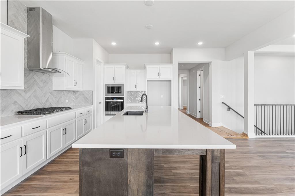 The Hunt by Hakes Brothers is the ultimate home with a grand, luxurious feel! Enjoy the spacious main level featuring 3 bedrooms, 2.5 bathrooms, and a laundry room connected to the primary suite. The chef’s kitchen boasts an oversized island, perfect for entertaining or culinary adventures, with built-in appliances including gas cooktop, oven, microwave, and real wood cabinets. The home features 8 ft doors on the main level and a spacious living room with wood beams serving as a stunning focal point. Quartz countertops throughout elevate the design, and the primary suite includes a spa like bathroom with a fully tiled, zero entry shower. The unfinished daylight basement is waiting for your design touch, with plumbing included for a future bathroom and wet bar create your ultimate hangout or entertainment space exactly how you’ve dreamed. This is a home you won’t want to miss! Located in the desirable Grayhawk at Prairie Gardens community, residents enjoy a pool, playground, green space. Just minutes from The Legends shopping, dining, and entertainment, with quick access to K7 and major highways, and approximately 30 minutes to Kansas City International Airport. Top rated schools, nearby retail, and a vibrant community make this home a must see. Photos are of a similar model and may not reflect all finishes, upgrades, or features of this specific home. Home estimated completion March 2026