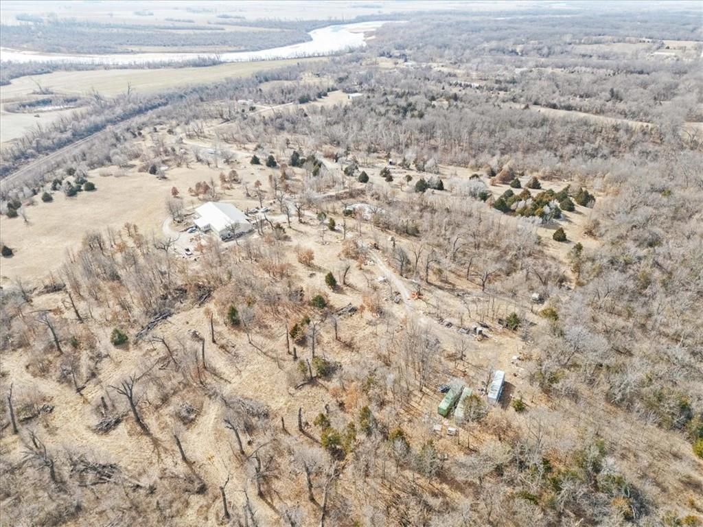 Gorgeous land and setting! If you're looking for privacy and incredible views-This property is for you! (Seller is in process of removing all items from shop and property) Set on 38 scenic acres at the end of a quiet dead-end road in the highly sought-after Eudora School District, this rare property delivers privacy, versatility, and sweeping views of surrounding cropland—an ideal setting for those who value space, function, and long-term opportunity. The home offers a comfortable open-concept layout with two spacious bedrooms and two full bathrooms, complemented by custom woodwork throughout that adds warmth and character. With a little paint and updates it's a fabulous living space. A full basement provides excellent storage or future expansion potential. A standout feature of the property is the approximately 2,400+/- sq ft shop. With soaring ceilings, a large open workspace, lofted storage, and room for heavy equipment, vehicles, or business operations, this space is well-suited for a home-based business, trades, farming operations, or recreational use. The scale and functionality of this shop are rarely found in residential properties and add significant value and flexibility. Whether you’re seeking a private country retreat, a recreational or hunting property, or a property that supports both work and lifestyle, this acreage offers endless possibilities—all in a peaceful rural setting just minutes from town. Also, a potential to secure access off paved roads-details upon request