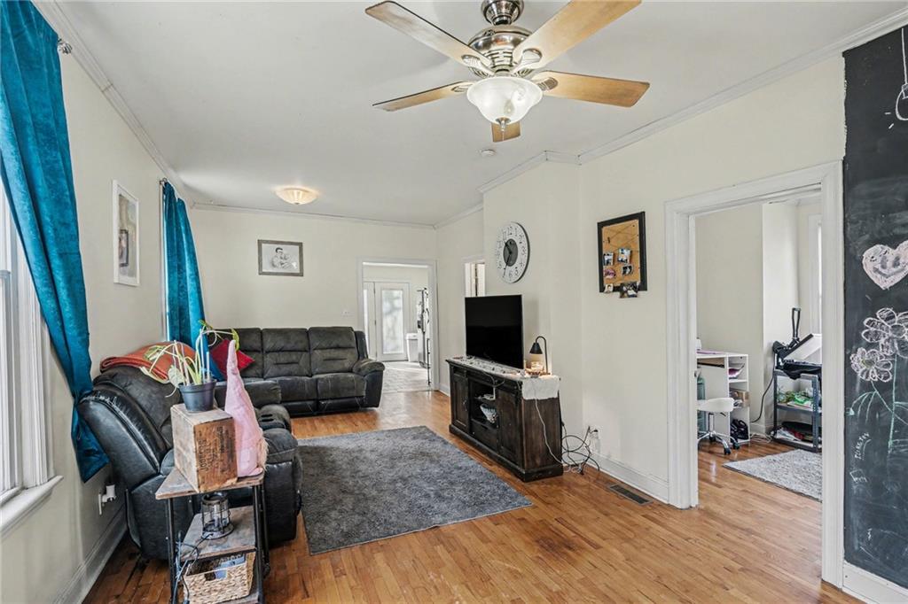 Welcome to this charming 2-bedroom, 1-bath home featuring a large, light-filled living room and a spacious kitchen perfect for cooking, entertaining, or gathering with family and friends. The home has a new roof, siding, gutters, soffits, and window wrap—providing both peace of mind and great curb appeal. Step outside to a fenced-in backyard and back deck, ideal for barbecues, gatherings, or quiet mornings with a cup of coffee. The layout is both functional and cozy, with a flow that makes everyday living effortless. Located near shopping, dining, parks, and schools, this home offers comfortable living in a convenient location.