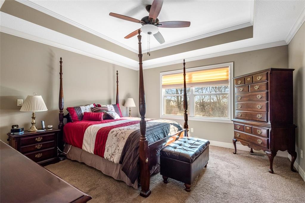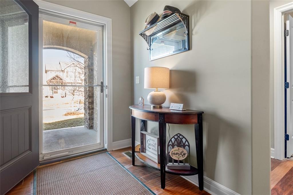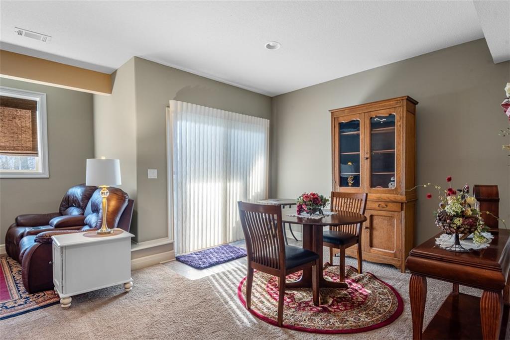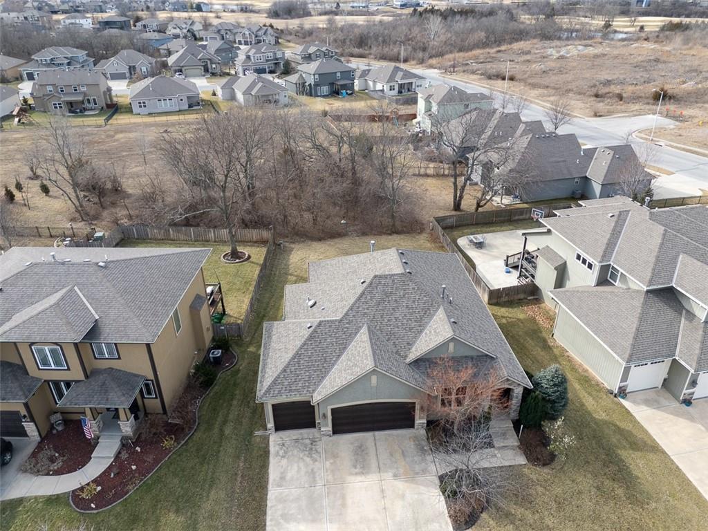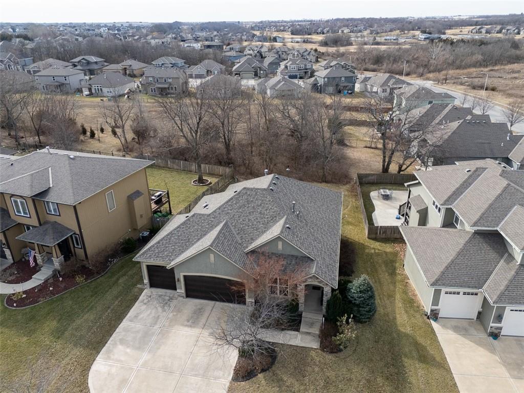 Don't miss out on this home in The Greens at Prairie Highlands - located in one of the area’s most sought-after golf course communities, just minutes west of Lake Olathe. This former model home is filled with thoughtful upgrades and timeless style. The popular reverse ranch floor plan offers an open-concept layout connecting the living room, kitchen, and dining area, perfect for everyday living and entertaining. The kitchen features a center island, pantry, pull-out drawers, and abundant cabinetry, while the stone fireplace and accent wall create a warm, inviting focal point in the living space. The spacious primary suite includes a spa-like bathroom with dual vanities and a soaking tub, conveniently connected to the laundry room. 2nd bedroom/office is also located on the main floor. Start your mornings on the covered deck overlooking peaceful green space and visiting wildlife. The finished lower level family room is ideal for entertaining. Additional features includes two bedrooms, full bath, plenty of storage and walkout/walkup access to the backyard. A three-car garage, in-ground auto drain sprinkler system, and close proximity to the community pool bring comfort and ease to everyday living. Residents enjoy access to the community pool, neighborhood activities, and Crush Restaurant at the Prairie Highlands Golf Course Clubhouse - open to the public. Golf course play requires membership. A single-owner home, thoughtfully maintained and ready to be enjoyed by its next owner.