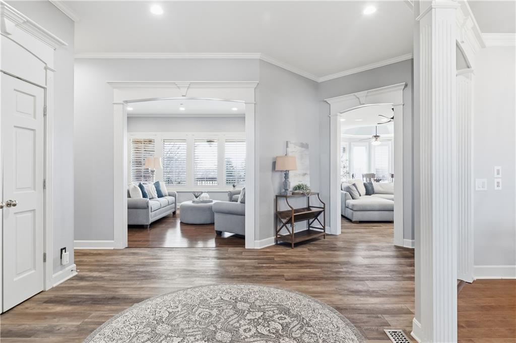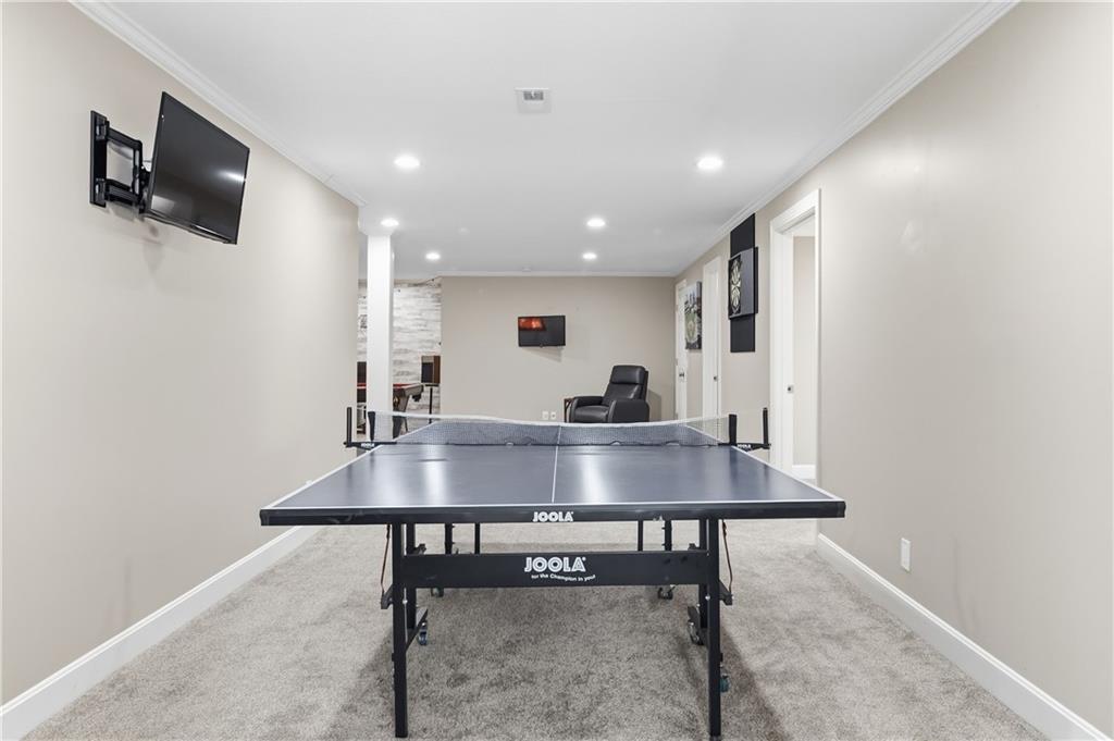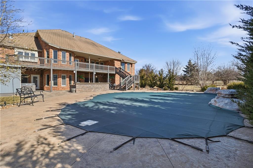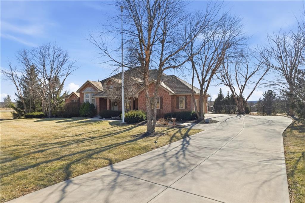 Absolutely STUNNING estate home on 2.56 acres with a reverse 1.5-story floorplan, offering 5 bedrooms & 4.5 baths in an impressive all-brick home with a concrete roof—built for timeless beauty and lasting quality. This home has been extensively updated throughout with fresh interior paint, new fixtures, and flooring. The beautifully updated kitchen is the heart of the home, featuring new countertops, painted cabinetry, updated appliances, and a stylish backsplash. You’ll love the two oversized pantries, offering incredible storage and functionality. The main level also includes a private office with extensive built-in cabinetry, along with a formal living room & formal dining room—perfect for entertaining. The primary suite is a true retreat with an updated spa-like bathroom, including heated mirrors, towel rack & a gorgeous walk-in shower. Even better — the second main-level bedroom features its own private en suite bathroom, making it perfect for guests, in-laws, or a second primary-style suite. You’ll also love the oversized laundry room, offering plenty of space for storage, folding, & everyday functionality. Downstairs, the finished lower level is an entertainer’s dream with a fully updated bar featuring new countertops, cabinetry, fresh paint, & updated lighting, plus three beverage refrigerators & a wine refrigerator. A separate game room includes lots of space for a pool table, ping-pong table, shuffleboard table, and additional bar space—ideal for hosting family and friends. Step outside and enjoy your own private backyard oasis with new landscaping, a saltwater-converted pool, and an incredible outdoor living setup. The property also features an additional outbuilding for pool storage and lawn equipment, plus a new outdoor kitchen designed for summer entertaining. Relax by the fire pit or unwind in the peaceful sitting area under the deck, surrounded by unmatched privacy. This one truly has it all—space, luxury, updates, and outdoor living at its finest.