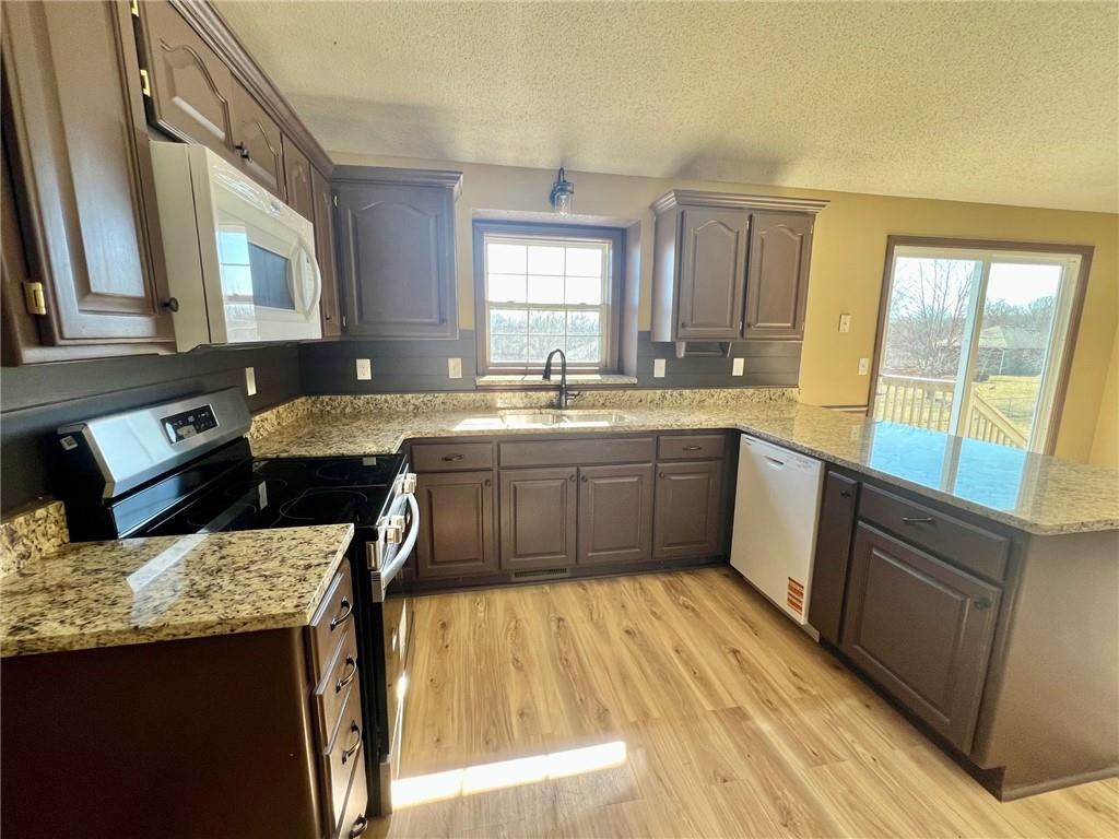 Striking color scheme inside with lots of new things. Granite counter tops, new sinks and stools, new laminate flooring, new light fixtures and appliances. This front-to-back split has tall ceilings in the living room and kitchen. Lower level has bright, airy rec. room with it's own half bath. It's a walkout too. Lots of new custom blinds provide great privacy and light control. Furnace was just replaced. Home has maintenance free siding, 9 month old roof and double-level deck. Adding your landscaping will reap big rewards. All of the homes in the neighborhood are in great shape and all very different, so if you are tired of cookie cutter subdivisions, come take a look and you will feel right at home.