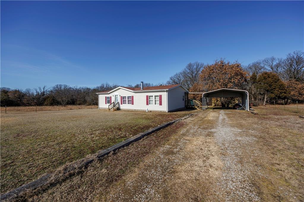 Sometimes all you really want is space, a good view, and a little peace and quiet. This 3-bedroom, 2-bath manufactured home sits on 27± fenced acres just west of Coffeyville with easy access to Hwy 166. The home offers a functional layout for easy living. In the living room you will find a wood-burning fireplace for cold winter nights. The eat-in kitchen has a small island with storage underneath. The primary bedroom has an en suite bathroom featuring a stall shower and jacuzzi tub- perfect for soaking the stress away. The land is fully fenced with a cattle guard by the house and chain-link fencing in the backyard, making it ideal for livestock or pets. A two-car carport and storage shed provide added convenience. The pond is the standout feature—perfect for fishing, relaxing, and enjoying quiet country evenings. The home does need some updates, including hail-damaged siding on the west side and carpet replacement, offering buyers an opportunity to update and add value. A deck in the backyard is ready for repair and personalization. This property offers open pasture, scenic views, and peaceful country living with close proximity to town. Call to schedule a tour today!