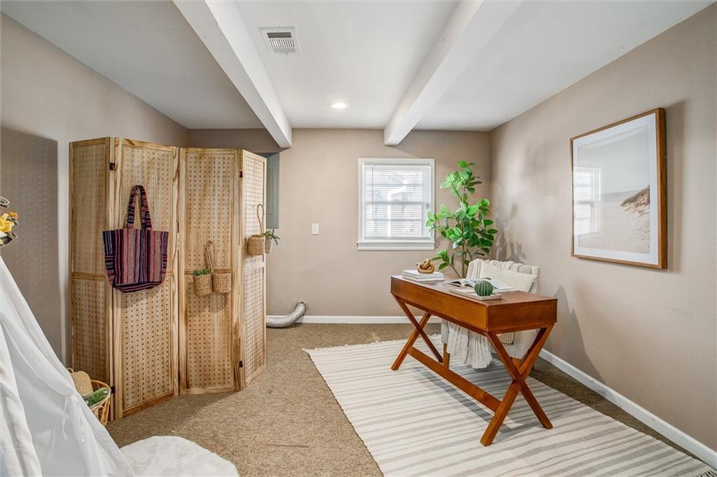 Perfect ranch home with so much already done for you! Enjoy peace of mind with a new roof, sewer line, updated electrical, and more. Easy one-level living features a convenient laundry/flex room just off the kitchen—ideal for a home office, playroom, or even a potential fourth bedroom. The versatile primary suite offers flexibility to fit your needs, whether as a spacious bedroom retreat or a second family room, complete with custom built-in cabinets and shelving. An additional mudroom provides a fantastic bonus space—perfect for pets, storage, or a workshop area. The thoughtfully designed outdoor space is set to impress, featuring a large yard with a defined garden area, a large storage shed, and a spacious dog run with a kennel your 4 legged friends will be sure to love- ALL belong to the property exclusively and stay! A recently poured concrete patio, added pathways, an extra-wide driveway, and updated siding complete the exterior, making this home a true standout. Hardwood floors under living room and 2 bedrooms.