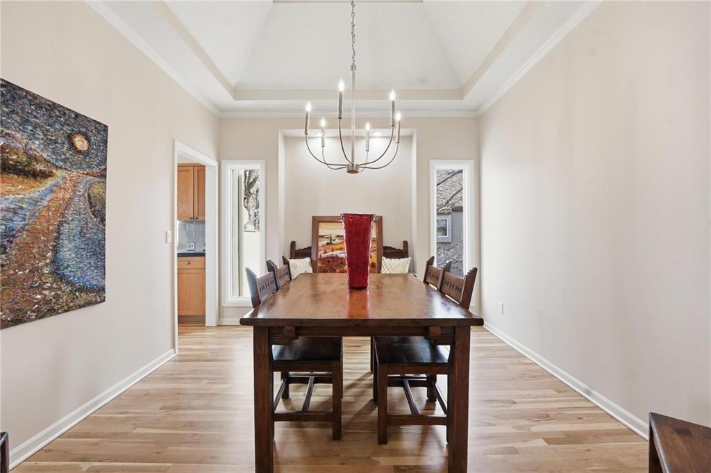 Vacation every day in the coveted Cedar Creek community! This stunning Reverse 1.5-story home combines thoughtful design with character & charm throughout in highly sought-after Cedar Creek. Step inside to discover a spacious and inviting layout featuring 3 bedrooms and 3 full baths. The main level boasts a light-filled great room with a gas fireplace, a formal dining room that's perfect for hosting those special gatherings, and a cozy breakfast room. The primary suite is a true haven, offering a generous bedroom, a spa-like bathroom with double vanities and a spacious shower, plus the convenience of a relocated laundry area right within the suite. Head down to the finished lower level featuring a large family room, gaming area, and/or home office, a 3rd bedroom, and 3 full bathroom and ample storage remains. One of the home’s standout features is the heated sunroom, where you can savor the beauty of nature no matter the season. Outside, the private lot is surrounded by mature trees, offering both tranquility and a touch of seclusion. And yes, the hot tub stays—your own private oasis awaits! Living in Cedar Creek means access to an array of resort-style amenities: a swimming pool, racquetball, tennis, basketball, a well-equipped gym, and a picturesque clubhouse perfect for special celebrations. Nestled in a serene cul-de-sac, this home also offers easy access to major highways (K-10, K-7, 435, and I-35) and falls within the award-winning Olathe School District, serving Cedar Creek Elementary, Mission Trail Middle, and Olathe West High School. With a newer roof, fresh interior paint throughout, and unbeatable community perks, this home is ready for you to move right in. Don’t miss your chance to live in this peaceful, tree-lined haven—schedule your showing today!