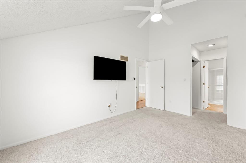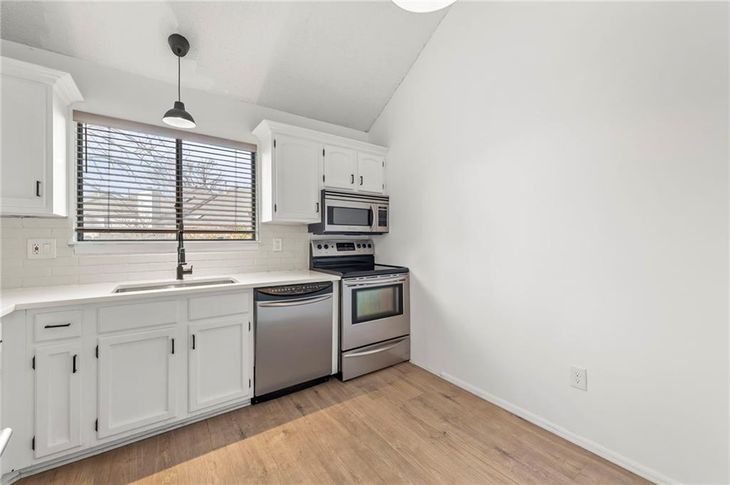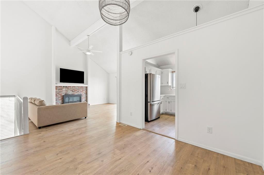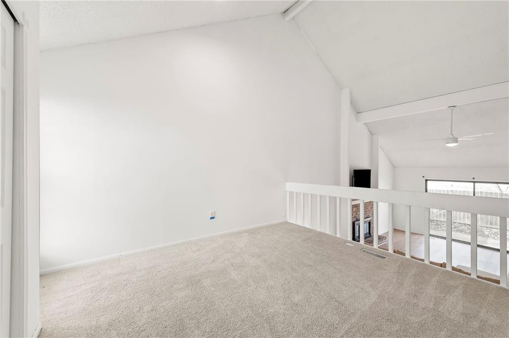 This townhome in The Trails features soaring vaulted ceilings, a seller-updated kitchen and bathrooms, new flooring, and a 2-car garage! Enjoy a private patio with a six-foot privacy fence and an unfinished basement—perfect for storage or to finish and add value. The kitchen opens to an inviting family room highlighted by a beautiful masonry fireplace. The loft overlooks the main level and works perfectly as a home office, workout space, or both, and could easily be enclosed to create a third bedroom. Located on a quiet cul-de-sac close to schools, shopping, and restaurants. Community amenities include walking trails, a swimming pool, and tennis courts for easy, low-maintenance living. Schedule your showing today!