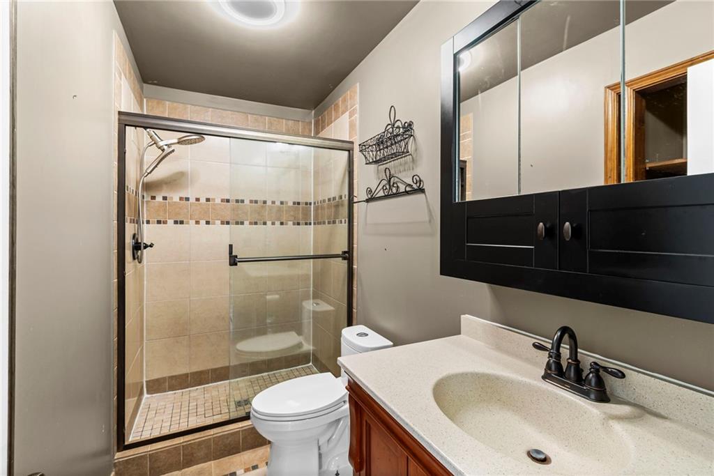 Beautifully updated and move-in ready side-to-side split blending timeless character with modern upgrades! This spacious 3-bedroom, 2.5-bath home features fresh interior paint, brand-new trim in the bedrooms, and stylish luxury plank vinyl flooring throughout the kitchen, living room, dining room, and all bedrooms for a seamless, contemporary feel. The inviting country eat-in kitchen offers abundant cabinetry, a new microwave, and generous space for gatherings and everyday living. Just off the living room, a newly installed door with freshly painted trim leads directly to the outdoor living area, creating easy indoor-outdoor flow. Step outside to a large two-tier deck that provides the perfect setting for entertaining guests, grilling out, or simply relaxing with your morning coffee. The finished basement adds valuable living space with a comfortable rec room and convenient half bath — ideal for movie nights, a game room, home office, or hosting guests. All appliances remain with the home — including washer and dryer — making your move effortless. With multiple living spaces, thoughtful updates, and excellent entertaining areas inside and out, this home delivers the comfort, style, and functionality today’s buyers are searching for.