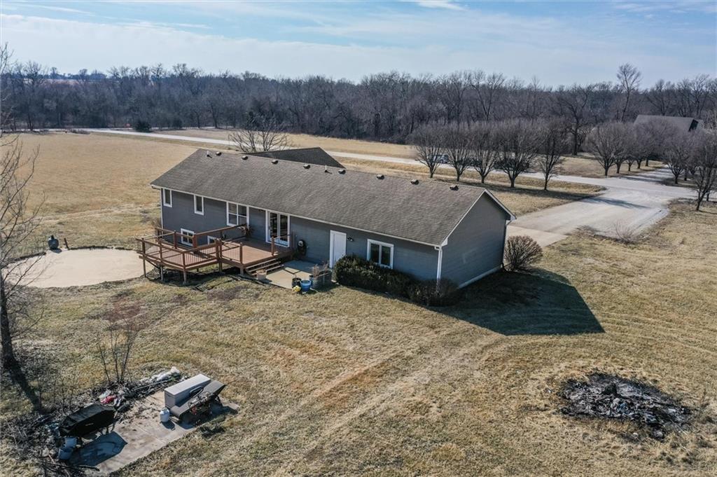 BACK ON THE MARKET in Wellsville with new roof and gutters! Ranch Home, Shop Potential & Room to Grow! Nestled on 5.1 serene acres, this 3-bedroom, 2-bath ranch home offers the perfect blend of country living and modern comfort—just minutes from highway access and the elementary school. Step inside to find beautiful hardwood floors and new carpet throughout the main level, creating a warm, move-in-ready feel. The spacious primary suite features a private ensuite bathroom and main level laundry off of the garage just adds to the convenience and comfort of this homes layout. Car enthusiasts, hobbyists, and outdoor lovers will appreciate the oversized 2-car garage with 9-foot doors, offering ample room for larger vehicles, equipment, or workshop space. Outside, the possibilities continue with a large aluminum carport on a concrete pad – easily convertible into a garage, workshop, or barn. There's an expansive, freshly repainted deck – ready to accommodate an above-ground pool for summer entertaining! Plenty of open acreage for gardening, recreation, animals, or simply enjoying peaceful Kansas sunsets. The unfinished basement is a blank canvas for your vision—already stubbed and framed for a future bathroom, making it ideal for additional living space, a home gym, media room, or guest suite. If you’ve been searching for acreage in Wellsville, a ranch home with land, or a property that offers both privacy and convenience, this is your opportunity. Enjoy the tranquility of country living while staying close to schools, amenities, and quick highway access. Come explore your future slice of serenity in Wellsville—this one won’t last long!