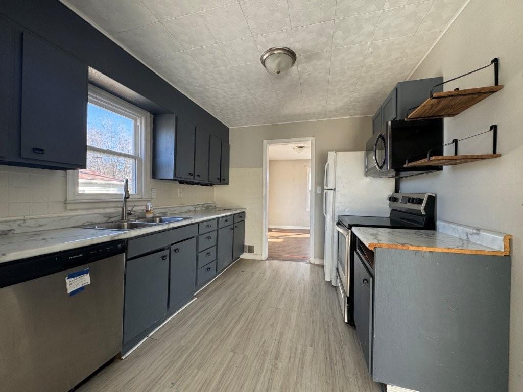 HUD Case #291-587831. Ranch-style home offering hardwood flooring and newer vinyl windows. Kitchen features painted gray cabinets with upgraded laminate countertops. Sunroom off the kitchen includes a white-washed brick fireplace, abundant windows, and access to the deck; currently staged as a dining area. Large living room accommodates oversized sectional or living/dining combination. Front patio and rear deck provide additional outdoor living space. Walkout basement offers flexible use for recreation room, home office, or media area; laundry located in basement. Eligible for FHA $100 Down Payment program for qualified owner-occupant buyers. Property sold AS-IS. Buyer to verify all information.