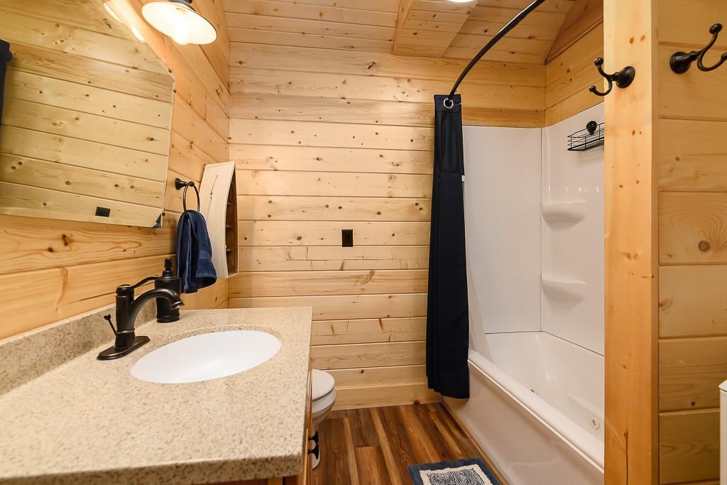 BEAUTIFUL 2-BED 1-BATH LAKE HOME ON DOUBLE LOT WITH BIG GARAGE FOR YOUR BOAT OR RV! This move-in ready getaway comes fully furnished and includes all appliances, so you can start enjoying the lake right away. Inside, you’ll love the hardwood floors and rustic wood walls, ceilings, and beams in the vaulted spaces, plus a cozy open living area with a loft bedroom that looks out over the main room. The covered front porch is a great spot to relax after a day on the water. Outside, there’s a 16x28 carport and a 28x40 metal garage that’s perfect for storing your boat, RV, or lake toys. The gated community offers 2 pools, putt-putt course and golf course and clubhouse. Plus it is a pivate lake, no registration for fishing or boating! The home sits on a double lot with second-tier lake access and is just a short walk to the water, giving you the lake lifestyle without the lakefront price. This is an easy, low-stress lake place ready for weekend fun or full-time living.
