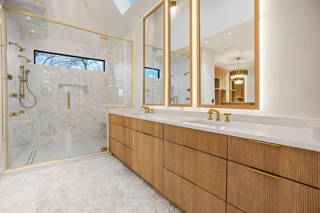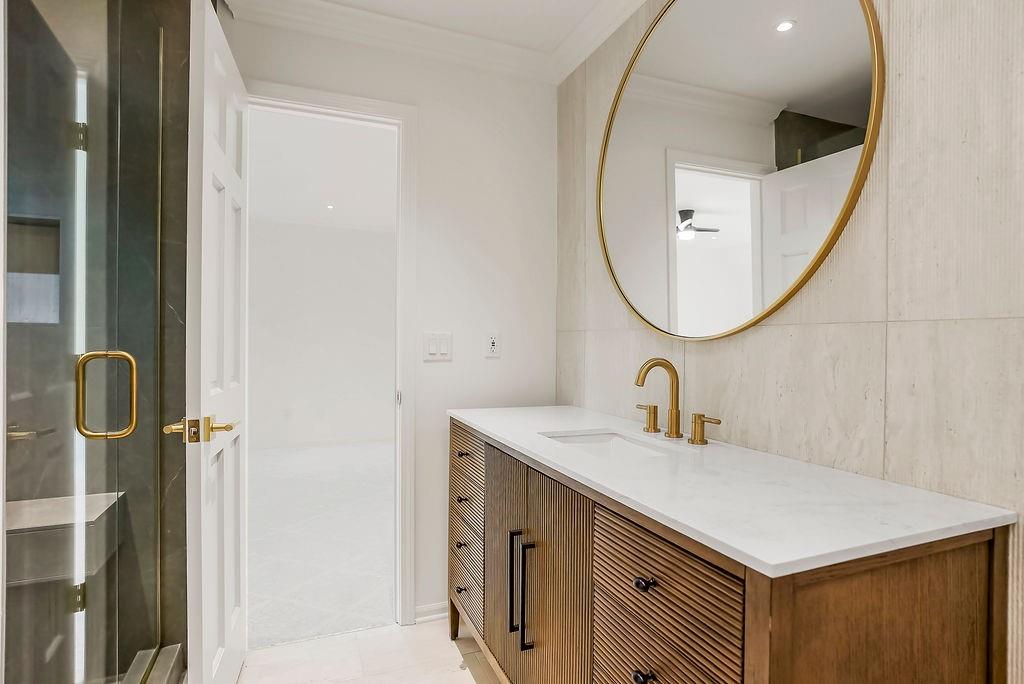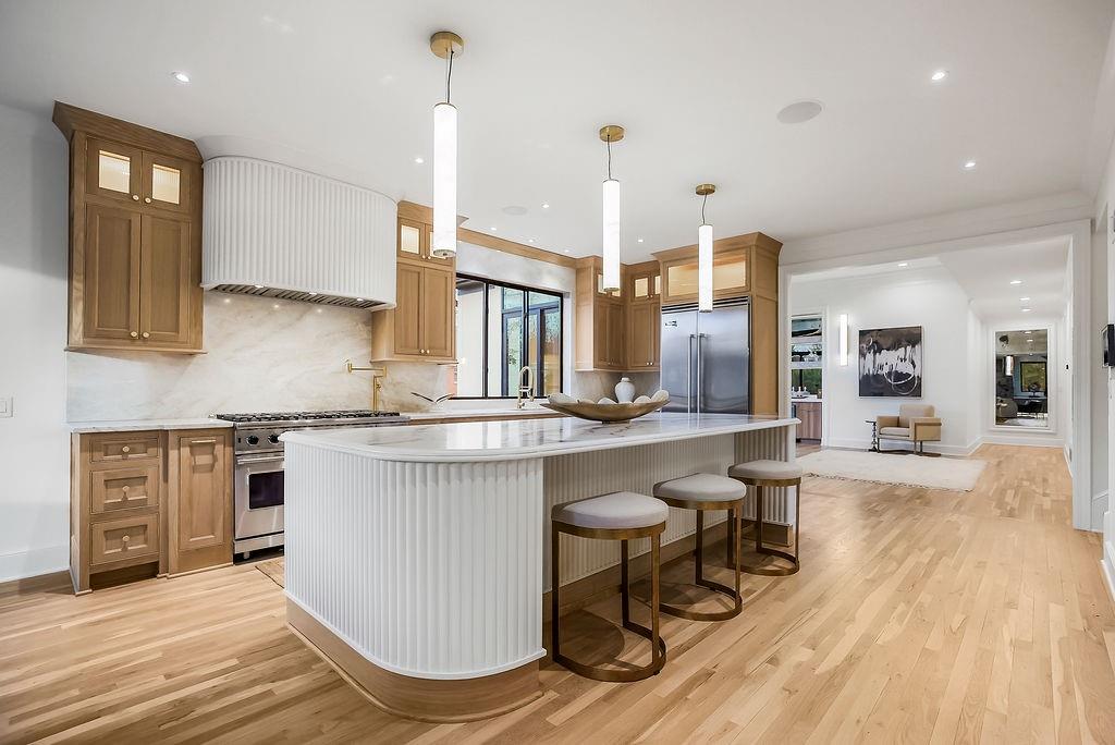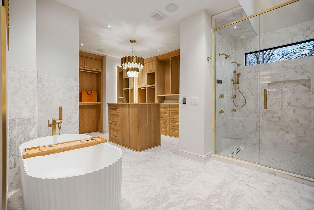 This masterfully rebuilt 1.5-story estate in prestigious Hallbrook delivers elevated design, architectural presence, & effortless luxury. From the inviting courtyard & new concrete circular drive to the meticulously curated interiors, this residence commands attention. Custom new ironwork, new inset cabinetry, new intricate millwork, new statement designer lighting, & new French oak herringbone hardwood floors handcrafted by local contractor, Acme Floor, set a tone of unmistakable quality. New Pella windows & dramatic bi-fold doors flood the home with natural light. Custom crown molding and trimwork flow throughout the home, layering every room w/ depth & dimension. The brand new kitchen is outfitted with new luxury Viking appliances & flows effortlessly into expansive living and dining spaces. The main-level primary suite is a private sanctuary, featuring a new spa-caliber bath wrapped in imported honed Greek marble, new travertine walls & heated floors, a new soaking tub, new dual vanities, a new custom walk-in closet, and a new $8,000 Kohler shower system w/ 3/8 in. glass and custom tile. Upstairs, each secondary bedroom offers its own en-suite bath w/ designer-selected finishes, providing privacy and comfort for all. The finished lower level rivals a private club, complete w/ a Capital Grille inspired bar, 75-in. television, fitness room, rec lounge, & dedicated billiards area. 2 brand new HVAC systems with a built-in scent system that mimics the 1 Hotel, new plumbing systems, 2 new hot water tanks, R-69 insulation, LED lighting, new tile roof, & an integrated multi-zone audio/AV system elevates both form & function of this estate. Outdoors, professionally landscaped grounds frame a spacious Trex deck with glass railings, offering a seamless extension of the home’s interiors through the 8-ft bi-fold doors. This home has been completely reconceived, crafted for the buyer who expects distinction, demands quality, and appreciates a home that truly stands apart.