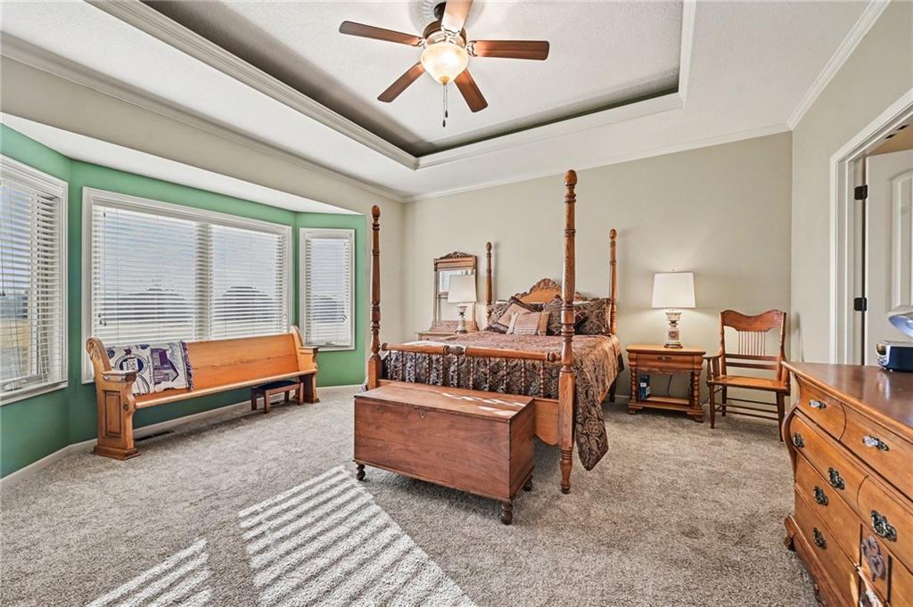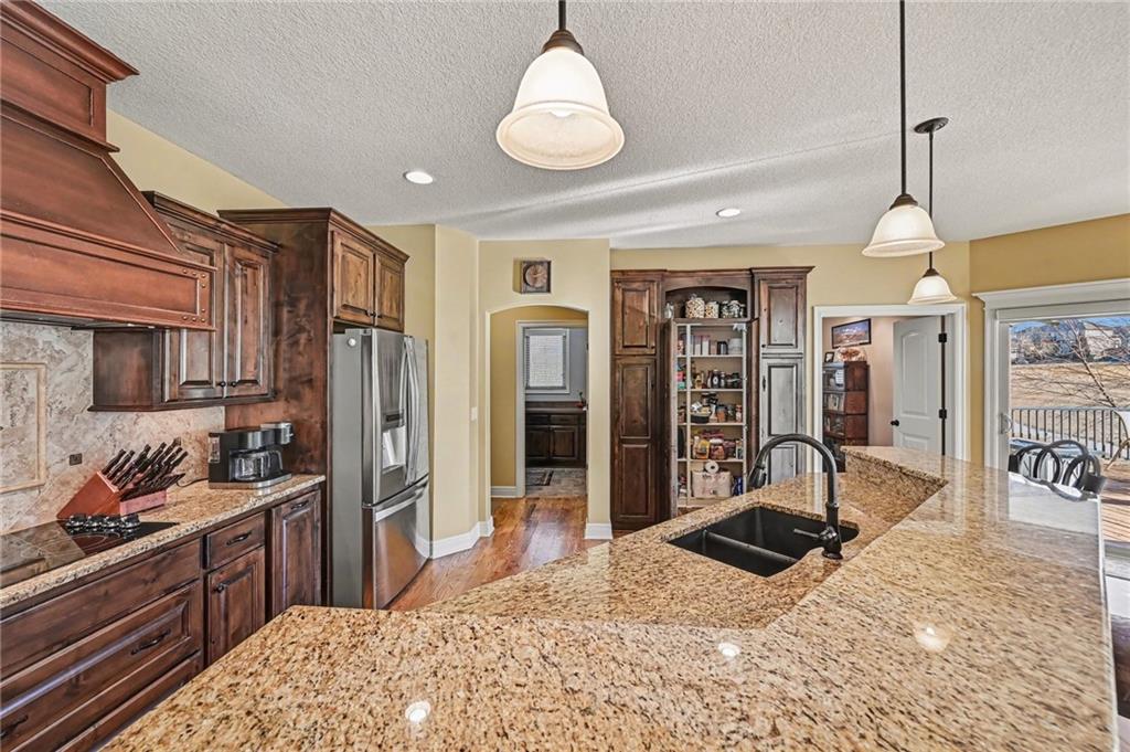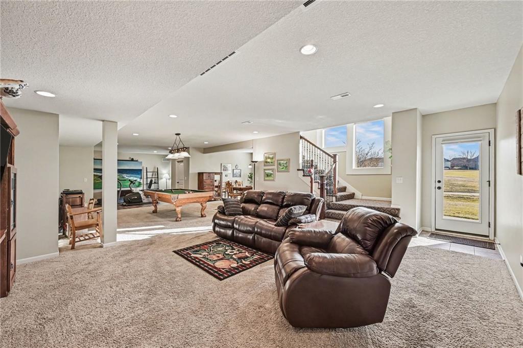 Experience the perfect blend of luxury and leisure in this immaculate 4-Bedroom, 3-Bathroom reverse 1.5-story home located in one of Kansas City's most sought-after communities-Staley Farms. The main level features a highly desirable open-concept layout, seamlessly connecting the kitchen, dining, and living ares for effortless entertaining. With two bedrooms on the main level-including the primary suite-plus a dedicated office, this floor plan offers the ultimate in convenience and modern functionality. Architectural elegance defines the transition to the lower level, where a stunning wall of windows and an open staircase flood the home with natural light. The expansive walk-out lower level is designed for versatility, featuring two separate exits and a specious layout that can easily adapt to a hobby room, secondary lounge, or creative studio. High-end exterior features include 4-sided stucco, a professional sprinkler system, and a large covered deck that serves as a scenic extension of your living space. This property offers a true resort-style lifestyle with unmatched neighborhood amenities. Residents enjoy access to a zero-entry pool, sand volleyball, an indoor basketball court, a playground, and tennis (pickleball) courts. The community is anchored by a Private Golf Club, featuring a clubhouse and on-site restaurant. Located in the Northland, this home provides quick access to top-rated schools, local coffee shops, shopping, the airport and major highways.