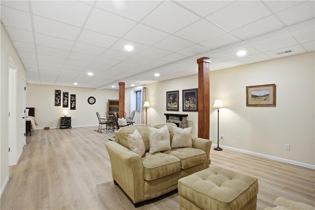 Former model home in highly desirable Greyhawke at the Lake! This spacious 4-bedroom, 3-bath residence offers an open and airy floor plan with tall 6-panel doors, large closets, and quality finishes throughout. The main level features three bedrooms, including a private primary suite with dual vanities, a jetted tub, a tiled glass walk-in shower, and a private water closet. Hardwood floors flow through the great room, dining area, and kitchen, and a gas fireplace anchors the living space perfect for both everyday living and entertaining. The finished daylight basement provides flexible space for recreation, guests, or hobbies. Step outside to enjoy the covered patio overlooking a beautifully landscaped corner lot that adjoins greenspace and includes an in ground sprinkler system. A security system and internal antenna streaming system are added bonuses. The three car attached garage offers plenty of room for vehicles, storage, or lake gear. Recent updates include a new roof and gutters for added peace of mind. Located just minutes from Smithville Lake and Paradise Pointe Golf Complex, with easy access to top-rated Smithville schools and Northland amenities, this home delivers space, comfort, and an unbeatable location.