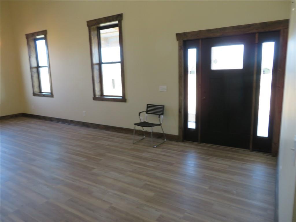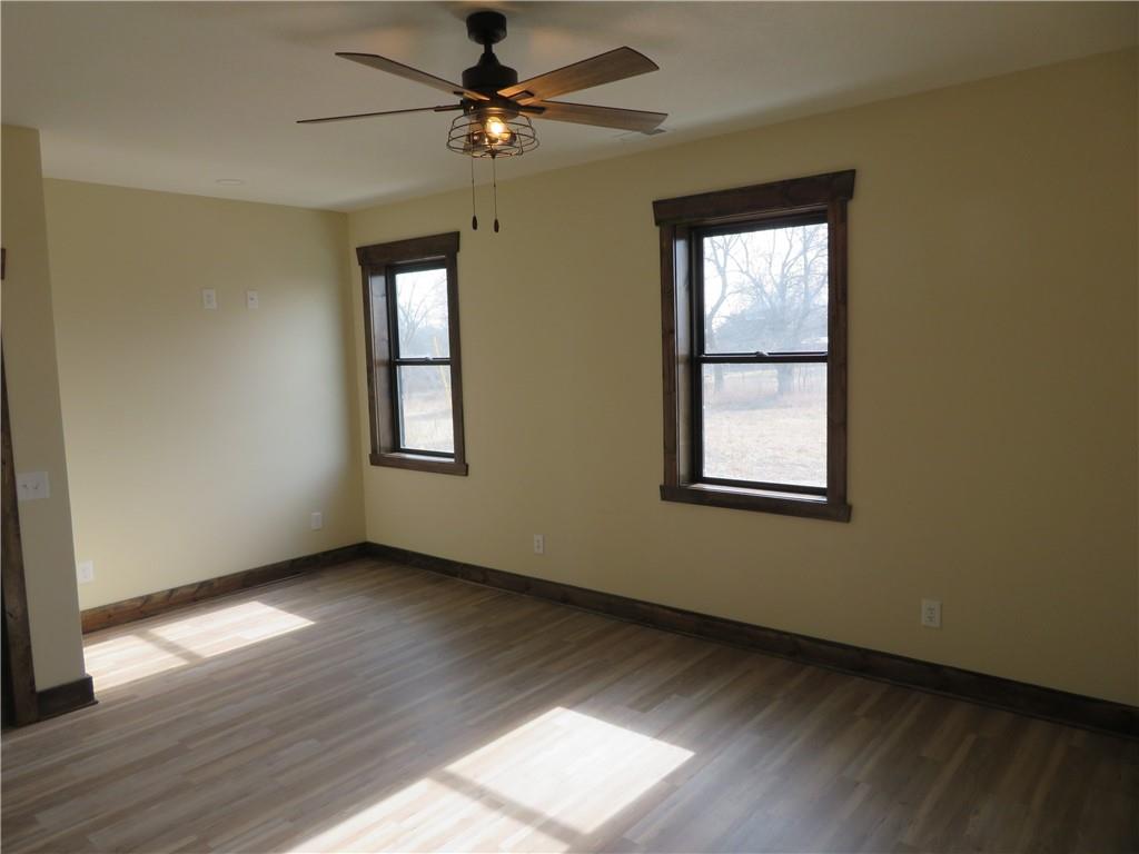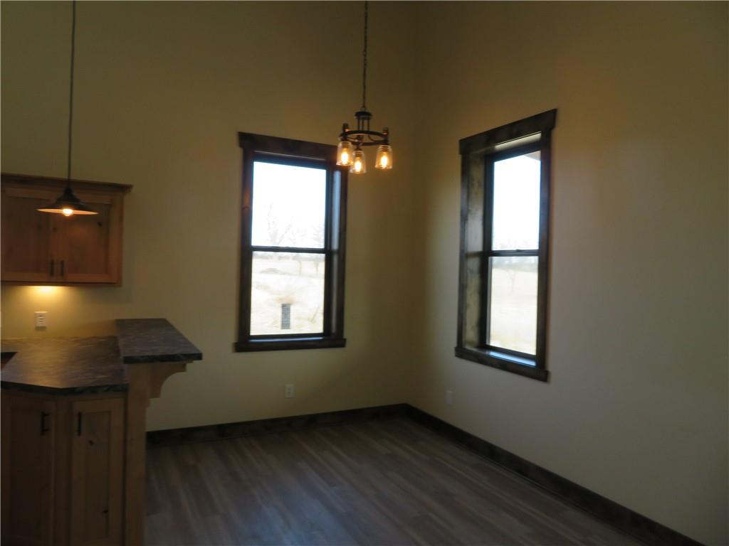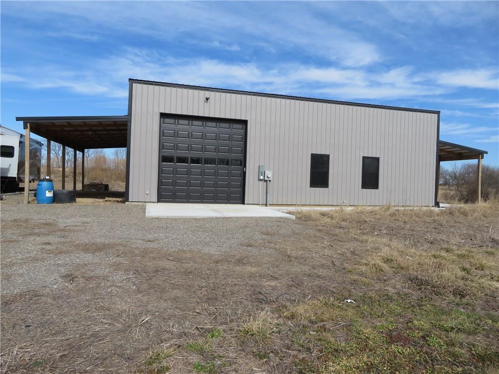 New, recently finished Barndominium on 12+-acres. 2bedroom, 2 bath, open floor plan. Custom kitchen & large, shelved pantry. Oversized primary suite w/enormous walk-in closet & large full bathroom w/extra cabinets for storage. Unique finishes, and light fixtures throughout. Covered front porch on east side is perfect for enjoying the views and Kansas sunrises. Oversized 35'x16' garage w/extra storage above finished space, 12' door perfect for large vehicle parking. 35'x15' attached lean-to has RV/camper hook-ups. Expansive 12+-acres w/nice pond, perimeter fencing & 3-sided shed for animal shelter. This property can easily be set-up for horses/livestock. Lovely country setting on paved road. Settle in and stay awhile!
