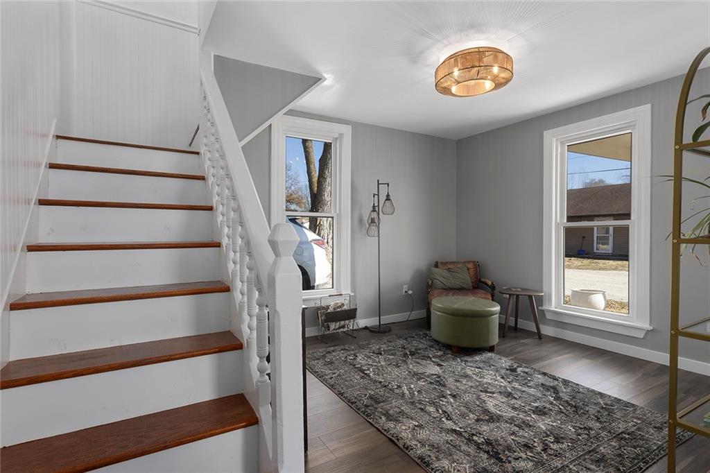 Welcome home to this beautifully updated 2-bedroom, 1-bath gem in the highly sought-after Kearney School District! Sitting on a 0.26-acre lot, this charming home perfectly blends modern updates with small-town charm. Step inside to a bright and welcoming living room that flows seamlessly into the dining area—ideal for entertaining or cozy family dinners. The gorgeous kitchen features stylish tile backsplash, a farmhouse sink, custom cabinetry, a pantry, and a convenient attached mudroom with access to the driveway. The main floor also includes the laundry room and bathroom. Upstairs, you’ll find two comfortable bedrooms offering peaceful retreats. Outside, enjoy a country feel with plenty of space for a garden, yet just minutes from the highway for easy commuting and access to nearby amenities. This move-in-ready home combines comfort, style, and convenience—all in one perfect package! Be sure to also check out MLS #2602293 at 610 Water Street, located right next door—an incredible opportunity to purchase two neighboring properties. Buy one and make the other an investment property, start your rental portfolio, or create a perfect setup for multigenerational living or a mother-in-law quarters arrangement.