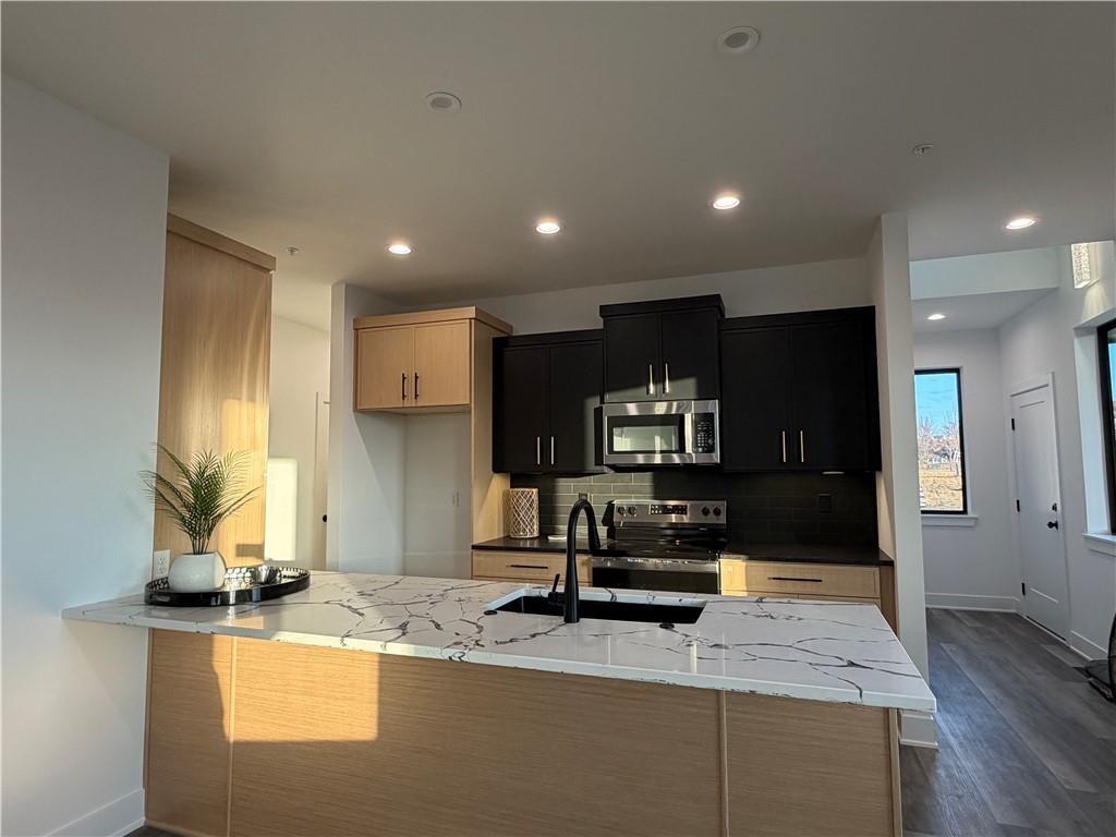 Discover elevated living at Silver Creek Landing - an exclusive collection of architecturally striking townhomes in the heart of Olathe, Kansas. Thoughtfully designed for modern lifestyles, these newly built residences seamlessly combine contemporary style with everyday functionality in sought-after Johnson County. Each 1.5-story townhome features a spacious main-level primary suite with a spa-inspired bath and oversized walk-in closet for comfort and convenience. The open-concept living area is highlighted by dramatic 20-foot ceilings and expansive windows that flood the space with natural light, creating an inviting setting for relaxing or entertaining. The functional, luxury kitchen showcases sleek finishes and modern design, ideal for both casual meals and hosting guests. Upstairs features a flexible loft space perfect for visitors, a home office, or additional living space. Upper level also boasts two generously sized secondary bedrooms, each with their own large walk-in closet. Unwind or entertain on your private rooftop terrace, where panoramic views provide the perfect backdrop for gatherings or quiet evenings at home. Designed for today’s discerning homeowner, Silver Creek Landing offers a true “lock-and-leave” lifestyle with low-maintenance provided living. Located just minutes from top-rated schools, premier shopping and dining, major highways, and the airport, this community delivers the ideal blend of serenity and accessibility. These units are also perfect for an investor looking to get into a market that is GROWING with limitless opportunity. Modern Midwest living starts here! Schedule a showing and be a part of Silver Creek Landing today! You don't want to miss this stunning development.