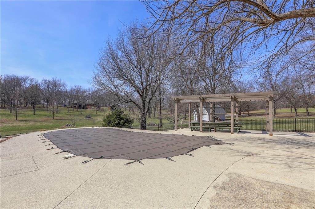 Set on nearly 3 acres of park-like grounds within a quiet, established neighborhood in the Lee’s Summit School District, this 1.5-story home is the perfect place to raise a family and host unforgettable gatherings. The interior is designed for entertaining, anchored by a huge custom kitchen featuring a large island, a propane stove, double ovens, and commercial-grade appliances including a dedicated ice machine and wine refrigerator. The space flows into an informal dining area and a versatile room that serves as a massive walk-in pantry or formal dining space. With two distinct living areas—a main-level great room and a large basement family room, both featuring cozy wood-burning fireplaces—there is plenty of space for family movie nights or hosting friends. Just off the kitchen, a massive main-level laundry room and a dedicated drop zone keep the household organized. The layout is built for family life, featuring a main-level primary suite with a private ensuite and a huge walk-in closet, along with a small office for remote work. The upper level houses three additional bedrooms, including one with generous attic storage. The lifestyle extends outdoors to a private backyard oasis. A saltwater inground pool serves as the centerpiece, surrounded by extensive decking with ample room for seating and a nearby fire pit. The yard is enhanced by custom landscaping featuring a variety of perennials and plants designed to bloom year after year. The walk-out basement includes a full bathroom and plenty of unfinished storage space, while the detached garage provides extra room for a workshop or storage—all just minutes from town.