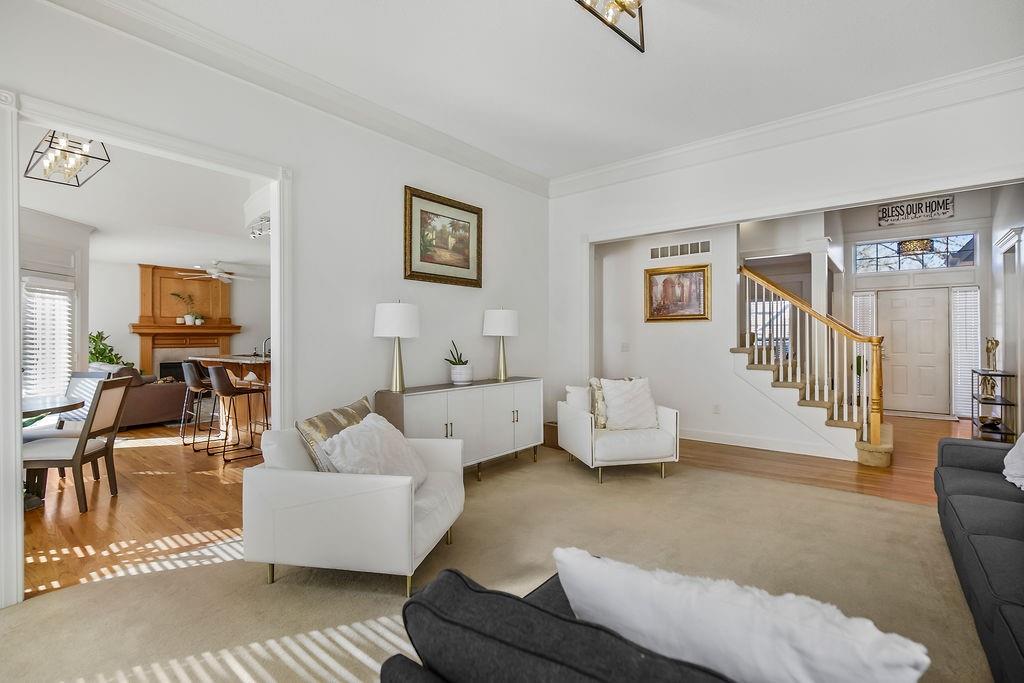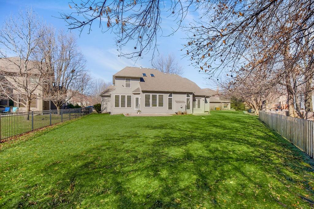 This beautiful 1.5-story home offers 4 bedrooms, 3.5 bathrooms, two fireplaces, a three-car garage, and over 2,700 finished square feet—perfectly situated at the end of a cul-de-sac in the highly sought-after Blue Valley School District. Designed for convenient main-level living, the first floor features the primary suite, great room, formal dining room, kitchen, breakfast room, hearth room, and laundry room. The great room showcases a stunning floor-to-ceiling fireplace mantel and a wall of windows that fill the space with natural light. The formal dining room includes a charming hutch bump-out and blinds. The kitchen offers stained cabinetry, granite countertops, a center island, pantry, and built-in desk area. Just off the kitchen, the breakfast room features vaulted ceilings, hardwood floors, and direct access to the backyard. The hearth room provides a cozy second fireplace, hardwood flooring, and blinds—creating the perfect gathering space. Hardwood floors extend through the entry, kitchen, hearth room, breakfast room, and half bath, complemented by impressive 10-foot ceilings on the main level. The main-level primary suite includes a vaulted ceiling, walk-in closet, and double doors leading to the patio. The en-suite bath features a jetted corner tub, tile flooring, and double vanities. Upstairs, you’ll find three additional bedrooms plus a loft overlooking the breakfast room, complete with vaulted ceilings, skylights, and a ceiling fan. Step outside to enjoy the back patio—perfect for relaxing or entertaining—overlooking a partially fenced backyard with space to play, garden, or unwind. In-ground sprinklers! Located in the desirable Wakefield Estates community, this home is all about location, location, location—close to parks, shopping, dining, and with quick access to 69 Highway, I-435, and I-35. Residents also enjoy access to the neighborhood pool! A rare opportunity in an unbeatable location—this home truly checks all the boxes!
