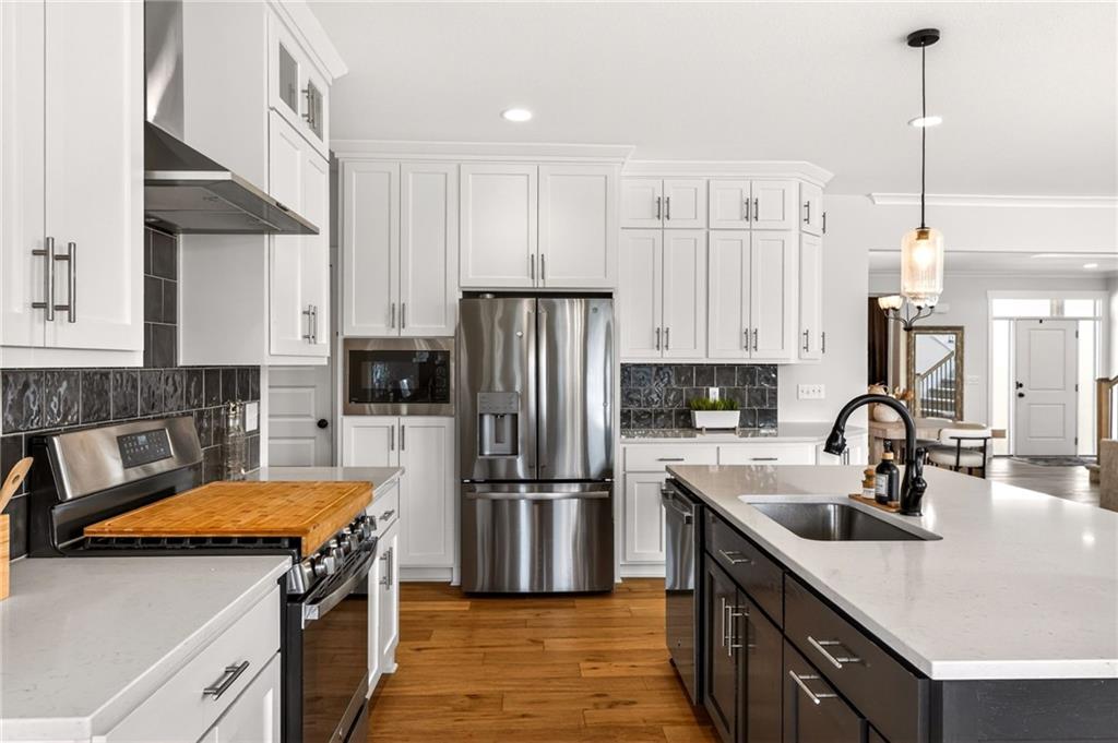 You pull up and already feel it — this is the one. Stone exterior, 3-car garage, a covered deck where you'll actually spend your evenings. Inside, everything just flows. The kitchen is the kind you cook in and hang out in at the same time — gas stove, wood beams overhead, a big island, and a pantry so deep you'll never run out of space. The mudroom off the garage means backpacks and shoes have a home that isn't your floor. Upstairs, the master suite is your exhale at the end of the day — tray ceilings, a soaking tub, a rain head shower, and a closet big enough for both of you. Laundry is right next door, because someone finally thought that through. The basement is bright, open, and walkout — room for movie nights, a home gym, a guest room, whatever you need it to be. And you're minutes from everything Liberty has to offer — restaurants, shopping, top-rated schools — without feeling like you're in the middle of it all. Some homes check the boxes. This one changes the standard.
