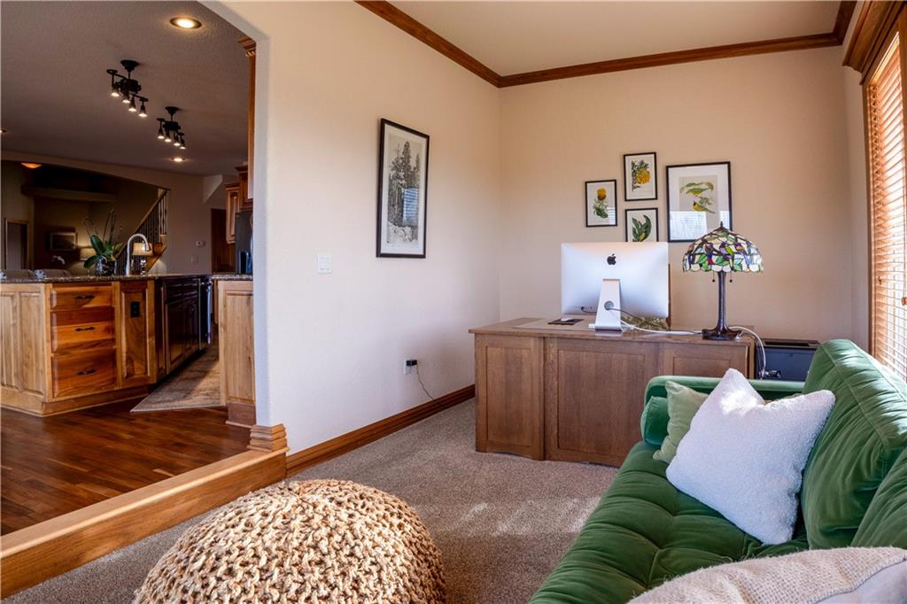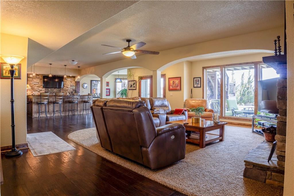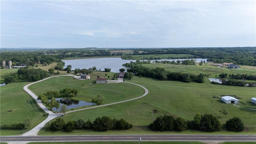 Stunning one-of-a-kind waterfront estate on approximately 10 private acres just minutes from Lawrence, Baldwin and Kansas City! Backing to the Wakarusa Watershed lake, this home offers exceptional views, privacy, and abundant wildlife on blacktop roads. The main level features an open floor plan with a deluxe kitchen, oversized island, office, and luxurious primary suite. Upstairs are four spacious bedrooms, each with bathroom access and walk-in closets. Bonus storage space in the easily accessible attic. The finished lower level is designed for entertaining with a family room, wet bar, and seamless access to the outdoor living area, custom gunite pool and spa. Offering over 5,500 sq ft of living space with 7 bedrooms and 5 bathrooms, the property also includes a four-car attached garage and an impressive 3300+ square foot heated shop with concrete floors, oversized doors, 220V electric, and RV storage. A rare opportunity for luxury lakefront living with space to work, play and unwind!