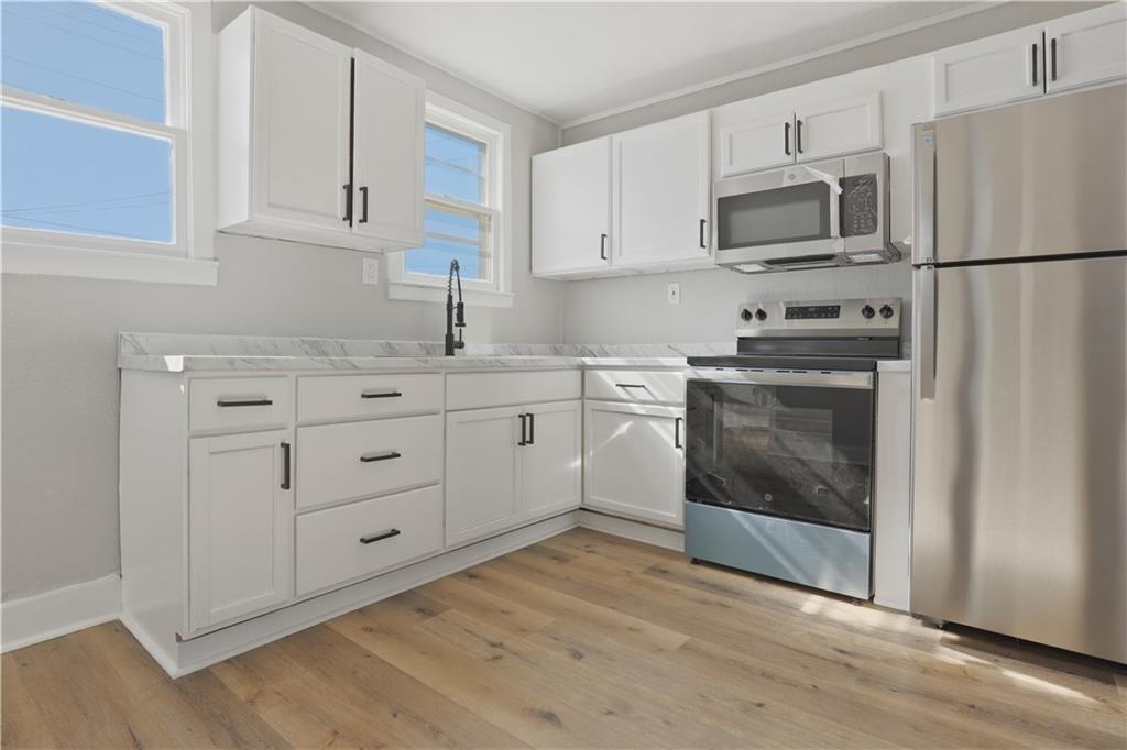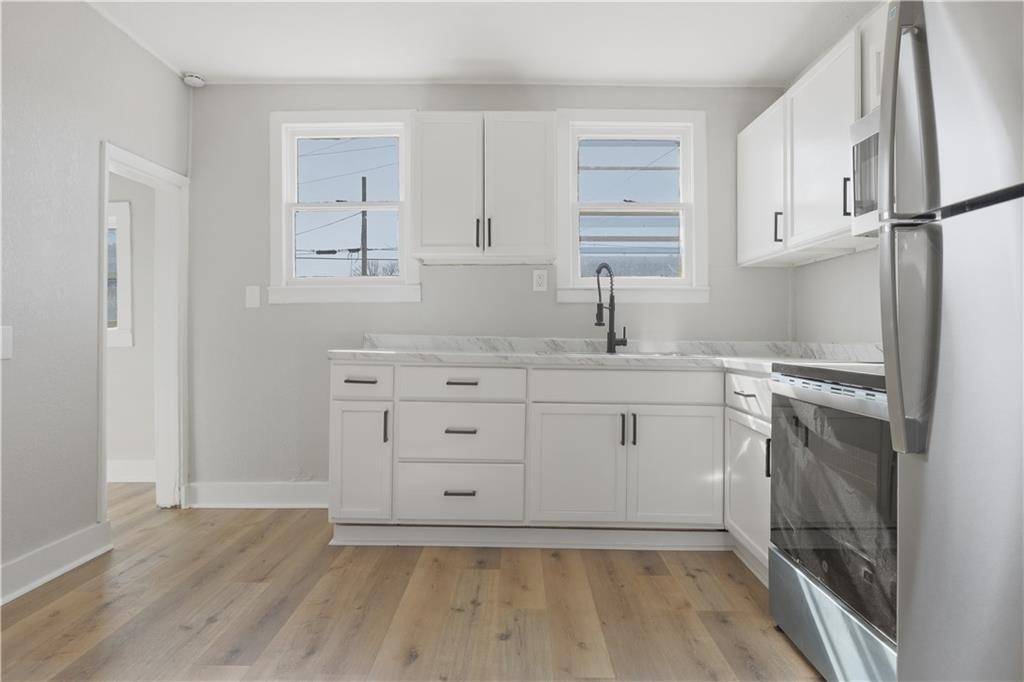 Completely remodeled and move-in ready, this beautifully updated 2-bedroom, 1-bath residence in Osawatomie blends modern finishes with timeless charm. The home features a very spacious living room. Recent improvements include fresh interior paint, updated flooring, a fully renovated kitchen and bathroom, and updated fixtures throughout. Newer roof for added value and peace of mind. Don’t miss your chance to own this fully finished home ready for its next chapter — call or text 816-738-6950 to schedule your private showing today!