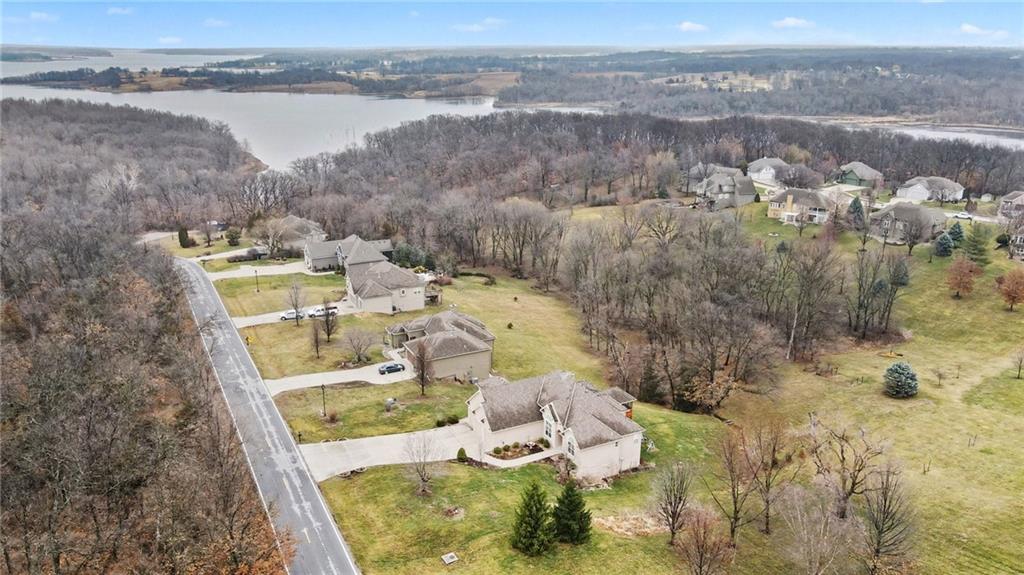 Located just minutes from Smithville Lake, walking trails, historic downtown, and the high school, this home offers both comfort and convenience. Do not miss this incredible opportunity. Upon entering this charming home, you are welcomed by beautiful wooden floors, vaulted ceilings, and an abundance of natural light from the large windows throughout the main floor. The dining room is filled with sunshine and features classic wainscoting along the walls. The living room offers a cozy gas fireplace and soaring ceilings, creating the perfect space for family gatherings or quiet nights in. The kitchen continues the classic wood style and is equipped with stainless steel appliances, a walk in pantry, and a breakfast nook with access to the screened in porch. The primary bedroom feels like its own private retreat with a spacious layout, plenty of windows, and a charming fireplace. The ensuite bathroom is truly a dream, featuring a jetted tub with a fireplace above, a large walk in shower, dual sinks with a makeup station between them, and a generous walk in closet. The remainder of the main floor includes two additional bedrooms, a full bathroom, and a conveniently located laundry room. Upstairs, you will find a large bedroom with recently updated flooring and a full bathroom. The walk out basement is designed for entertaining with a spacious recreation area, large windows, and a beautifully crafted wet bar. There is room for a pool table, craft space, and a gathering area, along with a dedicated exercise room, an additional bedroom, and a full bathroom. The basement walks out to a spacious backyard that backs to a small wooded area for added privacy.