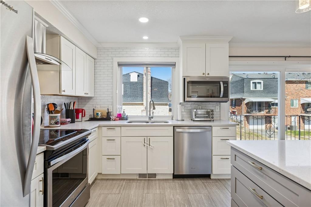 One of Greenbrier's most exquisite high-end remodels is once again available. Stunning $85,000 renovation (in 2019 Dollars) creating a beautiful one-of-a-kind masterpiece! One of the Larger 2BR floor plans in Greenbrier. An absolute Must-See property! Everything from the paver brick front courtyard patio with custom fencing and gate, the amazing job-finished REAL hardwood flooring, to the wainscoting and built-in bookcases, to the fully torn out and rebuilt custom staircase--now featuring lower-rise steps & wider treads inlaid with hardwood flooring. Walls blown out and kitchen opened up to create a dream kitchen with wonderful open floorplan including stainless steel appliances, sparkling quartz counters, custom cabinetry and even a pot filler! New half bath on main level as well. Upstairs you will find another gorgeous, remodeled bath, two very generous-sized bedrooms with able closet space + a large hall linen closet. The lower level features a ceramic tiled family room with access to the laundry, storage and single-car attached garage with private driveway behind. Fantastic subdivision with friendly neighbors of all ages and tons of activities! So close to all that downtown Overland Park offers, including the Kansas' #1-Rated "BEST" farmer's market current being re-constructed and expanded! You must see this wonderful home before it's too late!