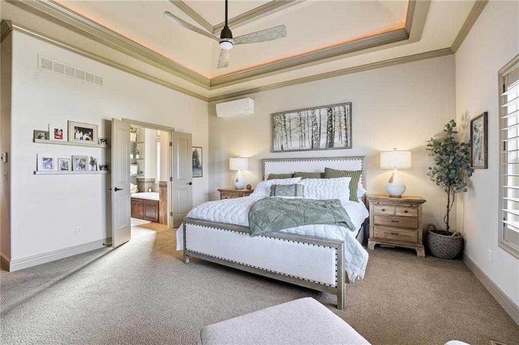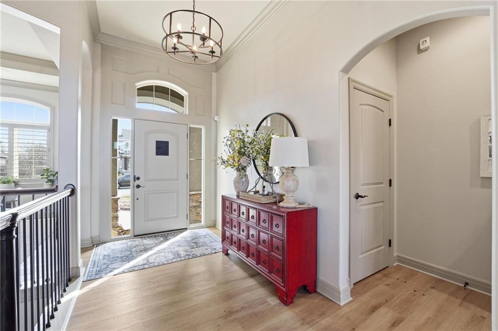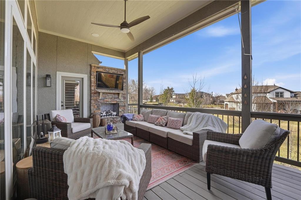 MAGNIFICENT REVERSE 1.5 ON A CUL-DE-SAC IN COLTON LAKES SOUTH IN THE AWARD-WINNING BLUE VALLEY SCHOOL DISTRICT! This stunning home perfectly blends warm, inviting contrasts with clean, modern design, all showcased in a desirable open floor plan ideal for everyday living and entertaining. Light-filled Great Room is anchored by a dramatic floor-to-ceiling stacked stone fireplace with custom built-ins—creating a striking focal point and the perfect place to gather. Chef’s kitchen is sure to impress with quartz countertops, a generous center eat-in island, walk-in pantry and stainless steel appliances, including a gas cooktop, built-in oven and microwave. An adjacent breakfast nook and formal dining room offer versatile spaces for hosting guests or enjoying cozy nights at home. Retreat to the luxurious primary suite featuring direct access to the covered deck—for your morning coffee or evening unwind. Spa-inspired en-suite boasts a double vanity, whirlpool tub, separate walk-in shower and a spacious walk-in closet with convenient in-suite laundry. Second bedroom, full bath and mudroom complete the thoughtfully designed main level. Finished walk-out lower level expands your living space with a large family room, wet bar, three additional bedrooms, two full baths and a second laundry area—ideal for guests or multi-generational living. Professionally designed landscaping creates a serene, private outdoor retreat. Enjoy time on the deck or patio, both overlooking the extra-wide, spacious lot and tree-filled greenspace. Unbeatable location just minutes from Heritage Park, the Overland Park Arboretum, Blue Hawk's shopping and dining and easy highway access. WELCOME HOME!