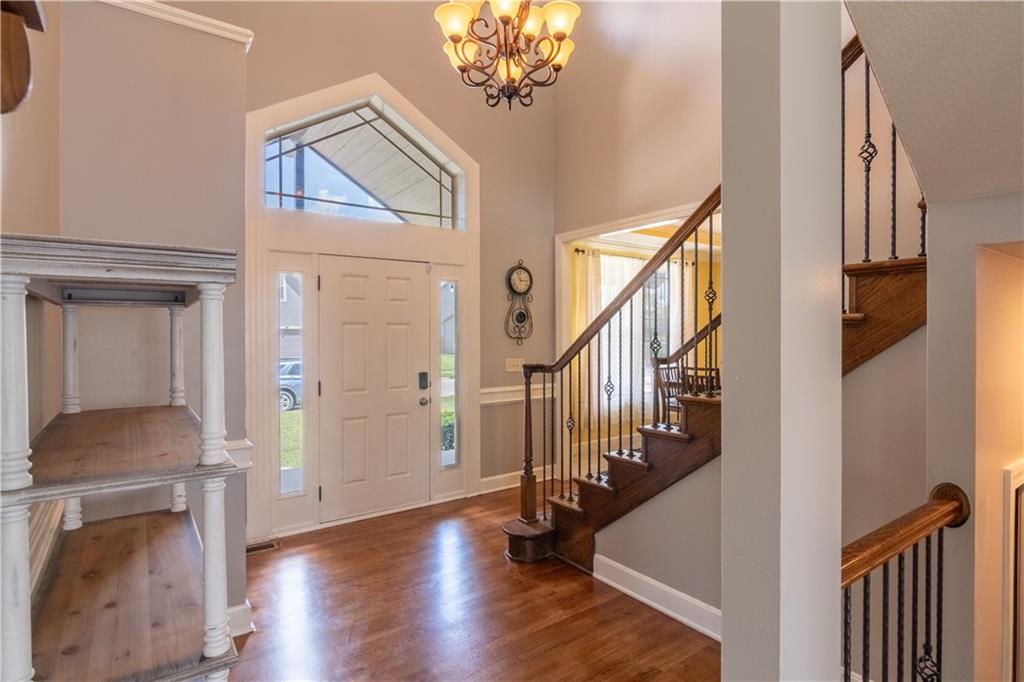 Welcome to a beautiful two-story residence in the coveted Northridge community of Piper, where elegance meets everyday comfort! Offering 4 bedrooms and 4.5 baths, this meticulously designed home delivers in every way. Large Chef’s kitchen appointed with custom cabinetry, gleaming granite countertops, and an expansive walk-in pantry, seamlessly blending beauty and function. Entertain effortlessly in the formal dining room, or gather in the grand living room anchored by a striking fireplace and filled with natural light. Step outside to your private outdoor retreat, a spacious deck overlooking a pristine & fenced yard, creating the perfect backdrop for sunset evenings and unforgettable gatherings. Upstairs, the primary suite is a sanctuary of its own, featuring soaring vaulted ceilings and a spa-inspired bath complete with dual vanities, a whirlpool soaking tub, an elegant walk-in shower, and two oversized walk-in closets. Brand new plush carpet enhances the entire second level. Each secondary bedroom offers generous walk-in closets, including a private ensuite and a well-appointed Jack-and-Jill bath. The finished walk-out lower level elevates entertaining with a sprawling recreation space, an additional fireplace, and a stylish bar designed for hosting in style. Located in one of Piper’s most desirable neighborhoods, Northridge offers scenic walking trails, an impressive resort-style community pool, and vibrant neighborhood events that create a true sense of community. Tour it today, you can't miss this one.