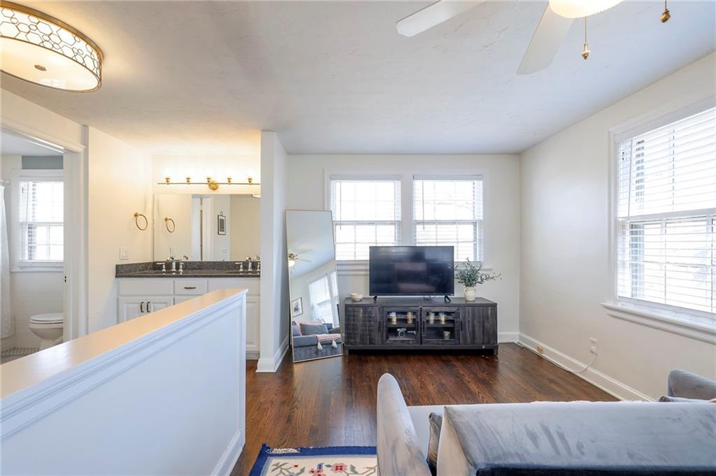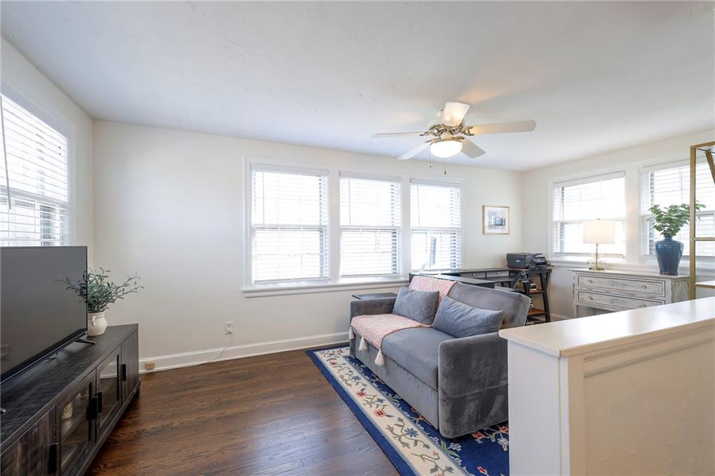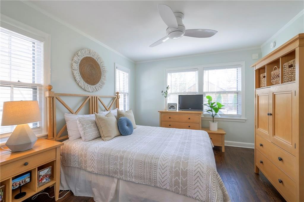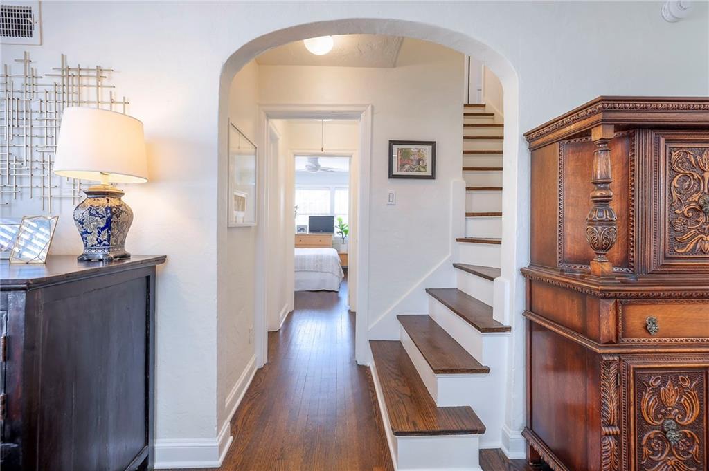 Charming Tudor perched on a hill in Oak Meyer Gardens! This beautifully maintained home features original hardwood floors throughout, a screened-in porch overlooking a charming street, 2 full bathrooms, a walk in closet for the primary suite, and first floor laundry. All of this and you’re walking distance to neighborhood favorites such as McLain’s, Front Range Cafe, and City Barrel Pizza! The main level offers a comfortable bedroom and full bathroom, an inviting living room with a wood-burning fireplace which naturally flows into the formal dining room, convenient first floor laundry, and a bright breakfast nook just off the kitchen. The kitchen has been thoughtfully updated with new tile flooring, and all appliances stay. CURRENTLY A 2-BEDROOM HOME, the finished upstairs space offers an easy opportunity to convert the current office to a third bedroom at a low cost (contractor bid of $1,600 available in MLS). The private upper level also features the primary suite, a generously sized closet and a double sink vanity- both a rare find in homes of this area. The finished basement provides additional flexible living space perfect for a rec room, home gym, office, or playroom. Outdoor living shines here! Relax on the adorable screened-in porch complete with a ceiling fan and electricity, or enjoy dinner on the side patio overlooking the fenced backyard. A one car detached, car friendly garage adds everyday convenience. Major improvements include: 5-year-old roof, HVAC replaced in 2023, hot water heater installed in 2020 The sellers have meticulously maintained records of all updates and improvements. Don’t miss this Oak Meyer Gardens gem!