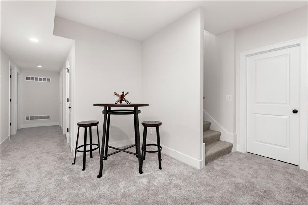 4 Car Garage, backs to Greenspace! Open floor plan built to maximize space. Custom kitchen cabinets, gas cook top, quartz tops, large walk-in pantry and plenty of kitchen storage. Convenient laundry off master, walk in shower (two head) plus tub. His and her closets unlike any reverse plan at this price. No more fighting over closet space. Unique, dry bar off family room, custom beams in family room with stone fireplace. Lower level is a full daylight for natural light. Large rec area has wet bar. Hallway to two more private bedrooms. Wonderful, covered deck, Sprinkler system. Photos are representation of home under construction. Actual home has 4 car front entry. All room sizes are estimate and subject to verification.