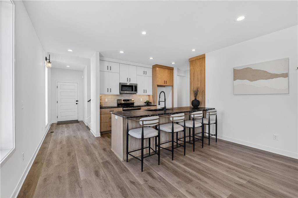 Discover refined, low-maintenance living at The Cliffs of Watercrest, where modern design and everyday convenience come together beautifully. This exclusive 1.5-story townhome blends contemporary style with functional comfort while offering a truly elevated lifestyle. Inside, soaring 20-foot ceilings and an open-concept layout create a bright, airy atmosphere filled with natural light. The spacious living area flows effortlessly into a functional luxury kitchen with premium finishes—perfect for hosting gatherings or enjoying a quiet evening at home. The main-level primary suite serves as a private retreat, featuring a spa-like bath with dual vanities and a generous walk-in closet and ensuite laundry. Upstairs, a versatile loft space leads to your own private rooftop terrace—an ideal setting for morning coffee, sunset views, or entertaining guests. Two additional large secondary suites each with their own walk-in closets ensures comfort and privacy for family or visitors. An unfinished walkout basement provides abundant storage and endless opportunities to customize the space to fit your needs. Ideally situated just minutes from premier shopping, dining, and major highways, The Cliffs of Watercrest offers the perfect balance of accessibility and upscale living. With low-maintenance services included, you can truly embrace a lock-and-leave lifestyle. ***Residents of the Cliffs also receive access to the amenities of WaterCrest Landing including the Pool, future Pickleball Courts and Play Area*** The Cliffs townhomes are also a perfect opportunity for investors looking to build their portfolio and take advantage of an exciting opportunity in a rapidly BOOMING area of Johnson County. Schedule your showing today!