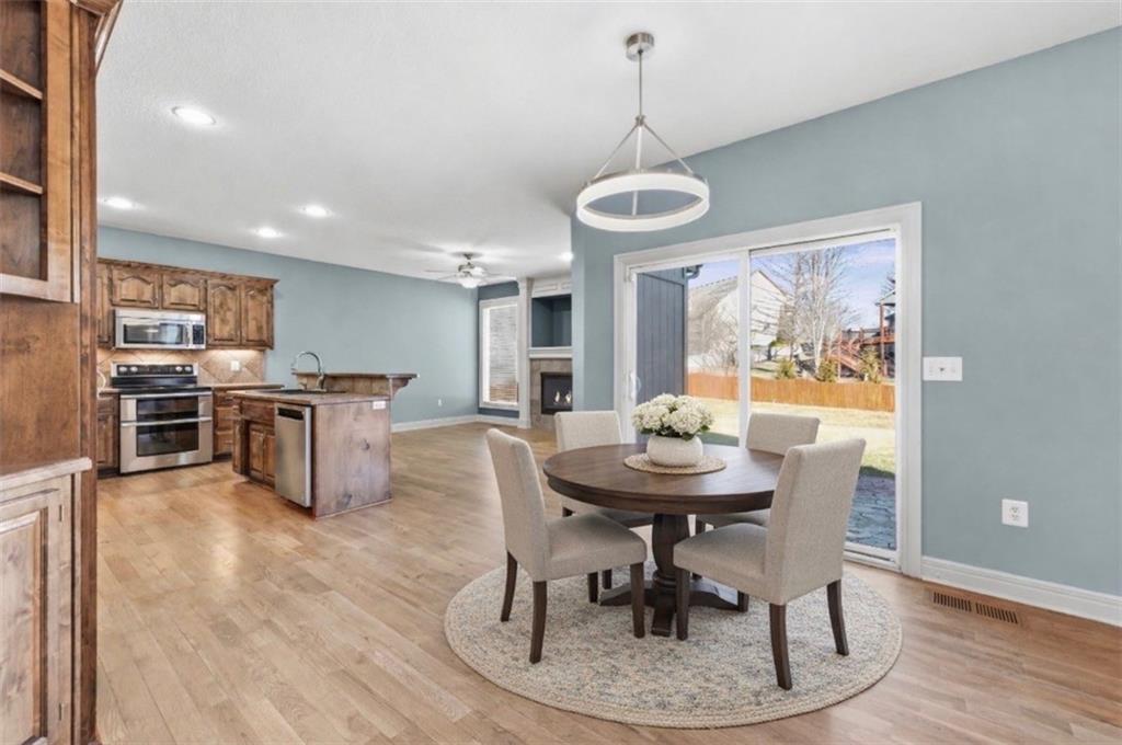 Welcome to this beautifully designed two-story home offering 4 bedrooms, 3 full baths, and 2 half baths in a highly convenient location! The inviting main level features a spacious formal dining room and an elegant living room, perfect for entertaining. The heart of the home is the warm and welcoming hearth room that flows seamlessly into the kitchen, complete with an island, walk-in pantry, and stainless steel appliances—ideal for gatherings both large and small. Upstairs, the luxurious primary suite provides a private retreat separate shower, tub, private toilet room, and an expansive walk-in closet with direct access to the laundry room for ultimate convenience. The second and third bedrooms share a well-appointed bath with double vanity and shower-over-tub combination, while the fourth bedroom enjoys its own private bathroom with shower—perfect for guests or older children. The finished basement expands your living space with a cozy family room highlighted by a fireplace, a wet bar for entertaining, a recreation area, a half bath, and a small unfinished storage area. Step outside to a flat, fully fenced backyard featuring a large stamped concrete patio—ideal for outdoor dining, relaxing, and entertaining. Located in a desirable neighborhood with easy access to the highway, shopping, dining, entertainment, and the airport, this home offers the perfect balance of comfort, style, and convenience. Don’t miss your opportunity to make it yours!
