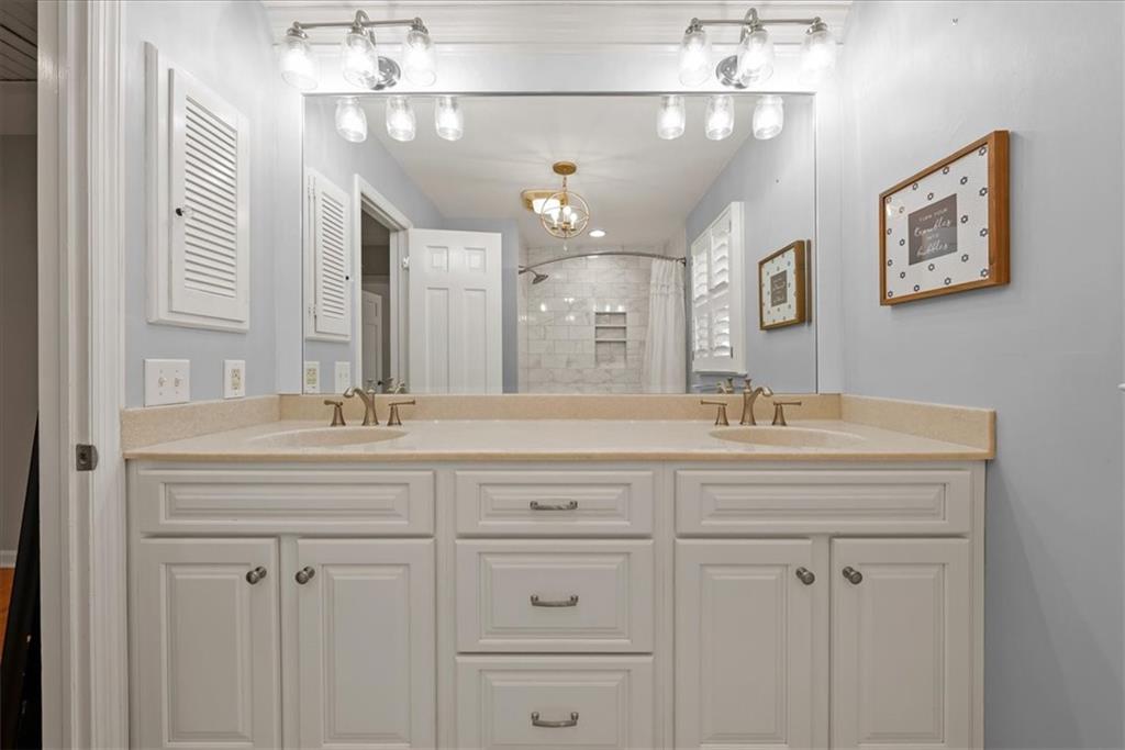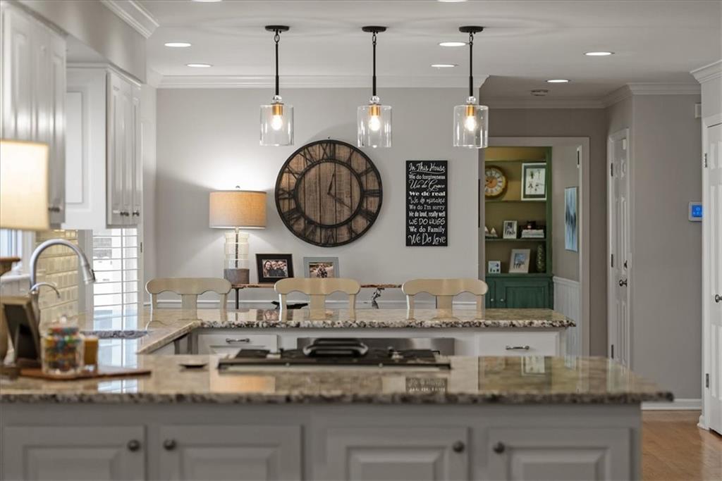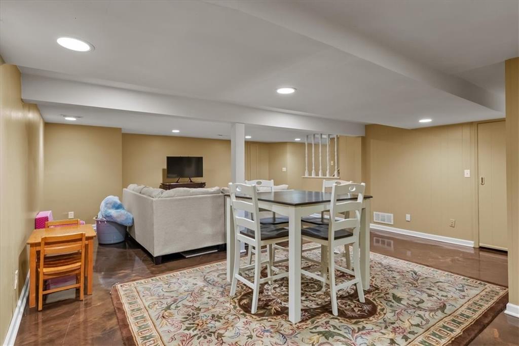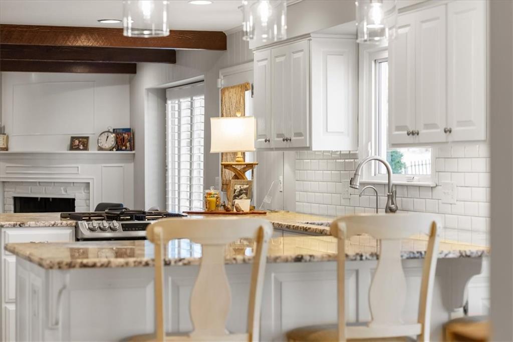 Beautifully updated, this French Design inspired home blends timeless character with thoughtful modern upgrades. The renovated kitchen is the heart of the home, featuring a generous quartz peninsula island, stainless appliances, a five-burner gas stove, abundant built-ins, and seamless flow into a spacious, inviting hearth room perfect for cozy evenings or lively gatherings. The main level also offers a formal dining room for memorable celebrations and a second living area that provides flexible space for relaxing evenings at home. Rich hardwood floors extend throughout both the main and second levels, adding warmth and continuity. Upstairs, you will find an expansive primary suite with built-in storage and a beautifully updated en suite bath designed for comfort and style. The main-floor bedroom, currently serves as an office and could easily transition into a private guest suite to suit your needs. The finished lower level provides a generous sized recreation area and half bath, plus a separate room perfect for a home gym, playroom or hobby area. Step outside and enjoy the custom stone patio with built-in fire pit for an inviting setting for crisp evenings under the stars. The large, fenced backyard offers space to play, garden, or simply unwind. This is the kind of home that feels welcoming the moment you walk in. It’s elegant, functional, and ready for it’s next chapter. Located just steps away from the elementary school and a short walk to shopping, dining, spa services, and much more!