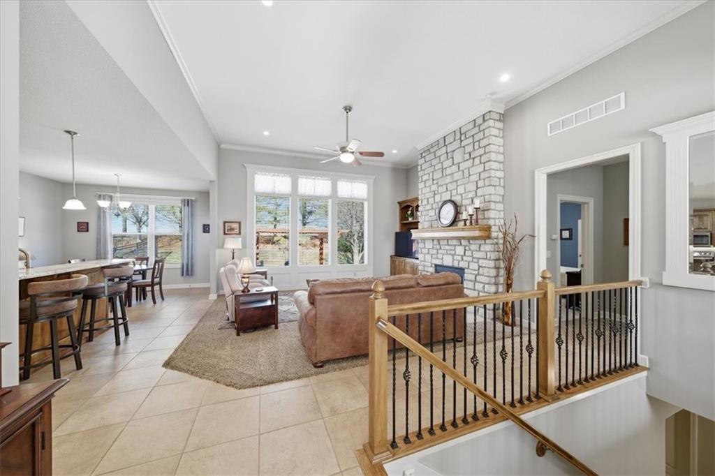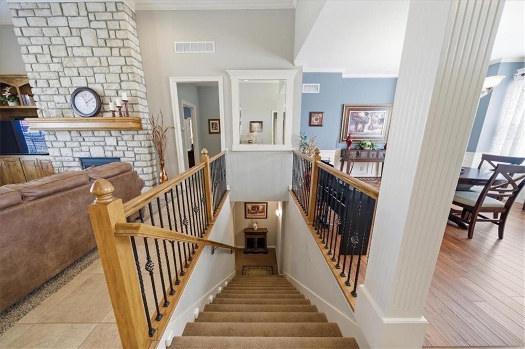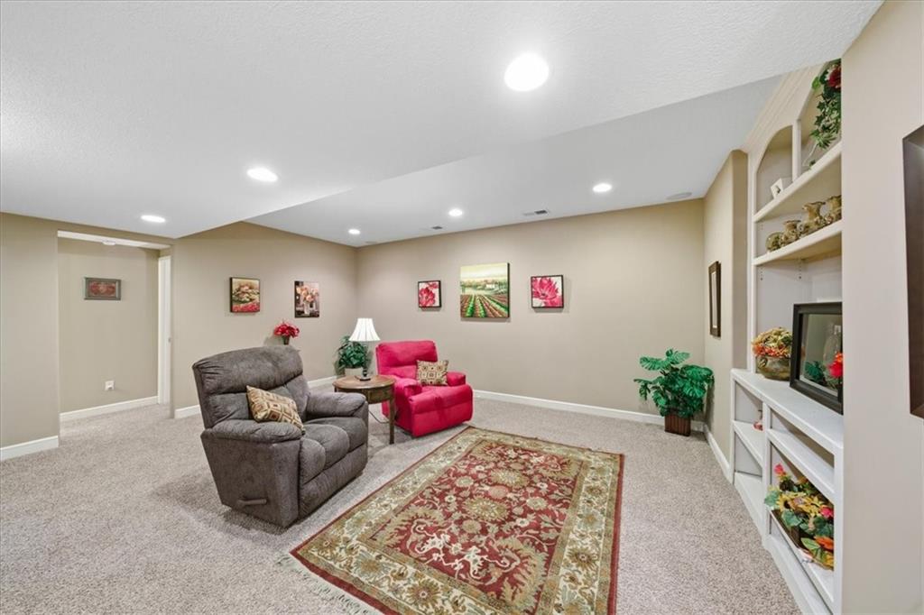 It's rare but oh, so exciting to discover a home that has been this impeccably maintained! Few homes can match the care and cleanliness this one has received and you'll recognize it just as soon as you pull up to the front curb. Important details have been thoughtfully improved: a concrete extension providing a full 3-car wide driveway; newly refreshed primary bath with a center makeup seat between two spacious vanities; beautiful modern tile backsplash with under-cabinet lighting to safely highlight your work space and provide soft ambient light; motion-detecting staircase lighting for ease moving downstairs; BRAND NEW AC and FURNACE; lighted storm shelter space; and even the care of regularly cleaning the gas-log fireplace. This is just the start of what you'll love about this comfortable home. You'll be mesmerized by the stone-to-ceiling fireplace, not to mention the cozy warmth of its flip-of-a-switch realistic gas flames and embers. You'll appreciate the timeless architectural detailing through every room and the plush new carpet in the main level bedrooms. You've found the unique reverse floor plan offering a true dining room that is just as comfortable as an open dining space for enjoying leisurely meals with family and friends as it is a sophisticated music room or library. Desirable floor plan with 2 bedrooms and 2 baths on main level, and 2 bedrooms and a 3rd bath in lower level. You'll be amazed at the closet space provided here- perfectly functional primary walk-in adjoins the purpose-built laundry room you'll appreciate for its extra space, folding cabinet and generous hanging bar, plus a walk-in closet downstairs that's big enough to hold just about any wardrobe, shoe collection or holiday decor! The seller's same attention to detail found inside flows seamlessly outdoors to a professional-grade paver patio, where a handsome cedar pergola and stacked-stone sitting walls create a private sanctuary for relaxing or entertaining in the tree-lined backyard.