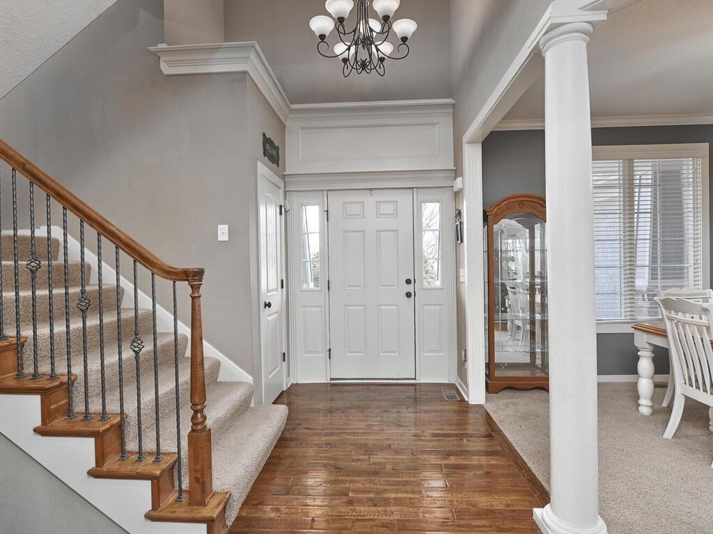 This Is Your New Home! Craftsman-Style Exterior w/Spacious Front Porch, Nestled on a Cul-de-Sac! Beautiful 4-Sided Hand-Stucco Exterior w/Fresh Exterior Paint! Permanent Exterior Upper & Lower LED All-Occasion Lighting Creates Incredible Curb Appeal Year-Round! Two-Story Entry Featuring an Iron Spindle Staircase. Main Level Includes Private First-Floor Office-Ideal for Working From Home! Gorgeous Hand-Scraped Hardwood Floors Flow Through Kitchen, Breakfast Room, Entryway, Mudroom & Half Bath. Spacious Kitchen Includes Granite Countertops, Large Island, Abundant Stained Cabinetry, Pantry & Black Appliances. Built-ins Throughout! Main-Level 1/2 Bath Features a Granite Countertop. Perfectly Sized Primary Suite Offers a Spa-Like Retreat w/Granite-Topped Double Vanity, Dual-Head Tiled Walk-In Shower, Jacuzzi tub & Huge Walk-In Closet. You’ll Love the Bedroom-Level laundry Room w/Direct Access to Primary Closet! Bedroom 2 Features Its Own Private Bath w/Tiled Shower. Bedrooms 3 & 4 Share a Hollywood bath w/Tiled Shower Over Tub—Perfectly Designed for Busy Mornings! Additional Highlights Include:2” blinds Throughout, Fresh Interior Paint in the Dining Room, Kitchen & Breakfast Room! Daylight Basement Framed & Pre-Wired for Finishing, Stubbed for a 3/4 Bathroom, Two Framed Rooms Plus 21' x 13' Storage Area! Endless Possibilities Here! Oversized 3-car Garage! Flat Backyard Perfect for Entertaining & Play! The 12' x 14' Iron-Spindled Deck Overlooks a Huge Stamped Concrete Patio w/Built-in Fire Pit! Extensive landscaping w/Concrete Edged Landscaping, Perennialss & Mature Trees! Highly Rated Olathe School District! Community Features a Fantastic Swimming Pool! Home is Just One Mile From—a 170-Acre Lake Surrounded by 258 Acres of Park Space. Enjoy Swim Beach, Marina, Spray Ground, Event Spaces, Playgrounds, Disc Golf Course & So Much More! Close to KC Wine Co. & Prairie Highlands Golf Course! This Home Truly Offers the Perfect Blend of Style, Space & Location. Don’t Miss It!