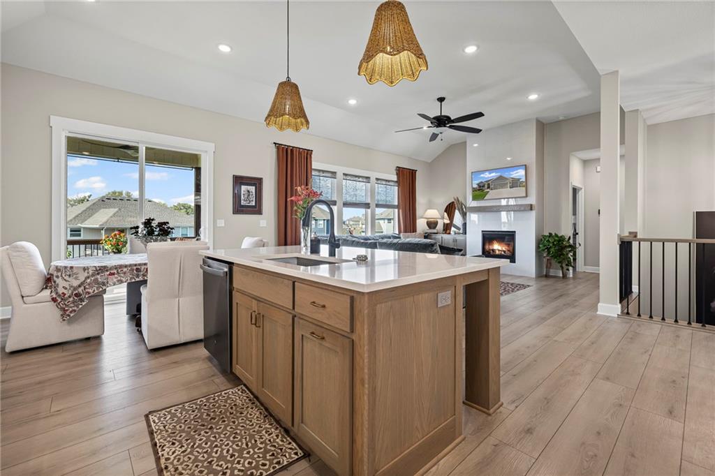 Better than new! Lovely four-bedroom reverse one and a half story by Pfannes Homes with tons of upgrades on a quiet cul-de-sac. Quartz counters, stainless steel appliances, upgraded lighting and hardware throughout, wood floors on main level. Large rec room area on the daylight lower level +2 bedrooms and a third-full bathroom and loads of storage space! Award-winning Basehor-Linwood school district! *big ticket items that stay with the home, refrigerator, washer & dryer and full house water softener and purifying system*