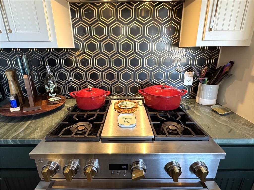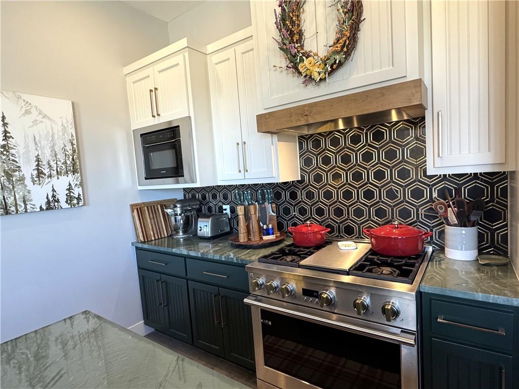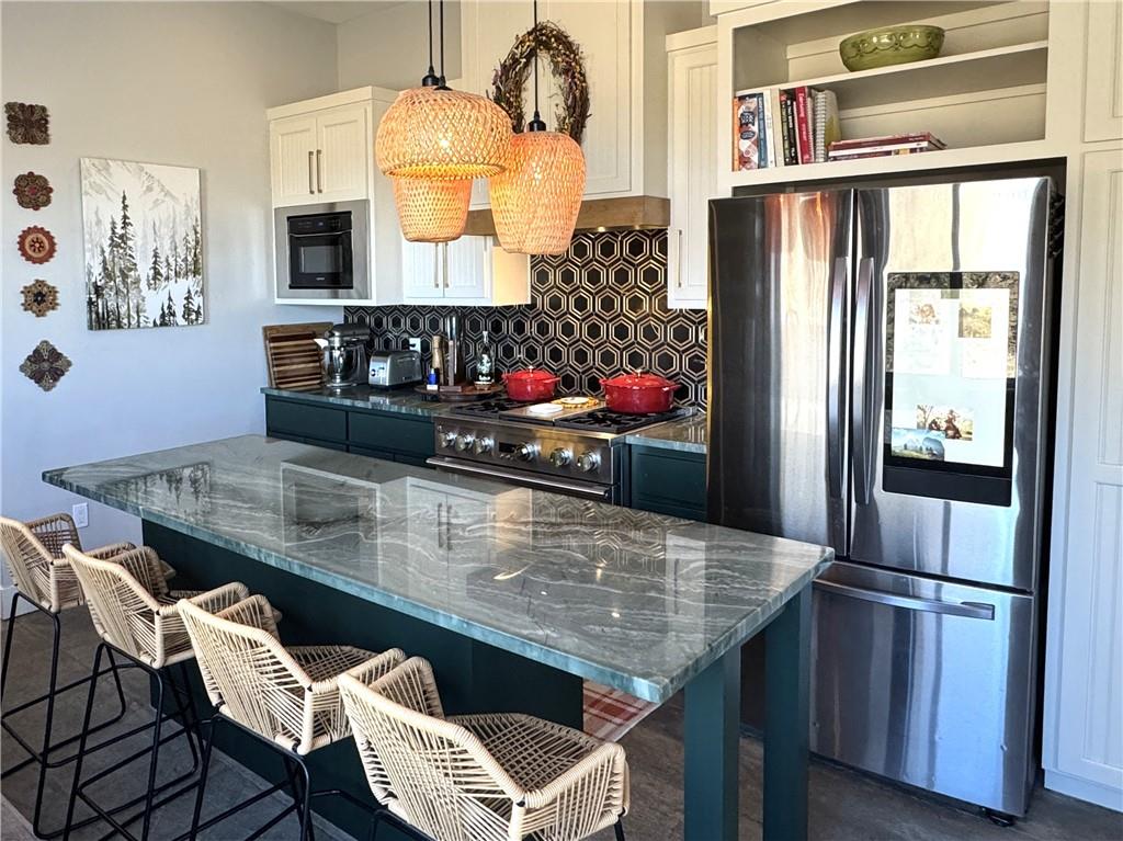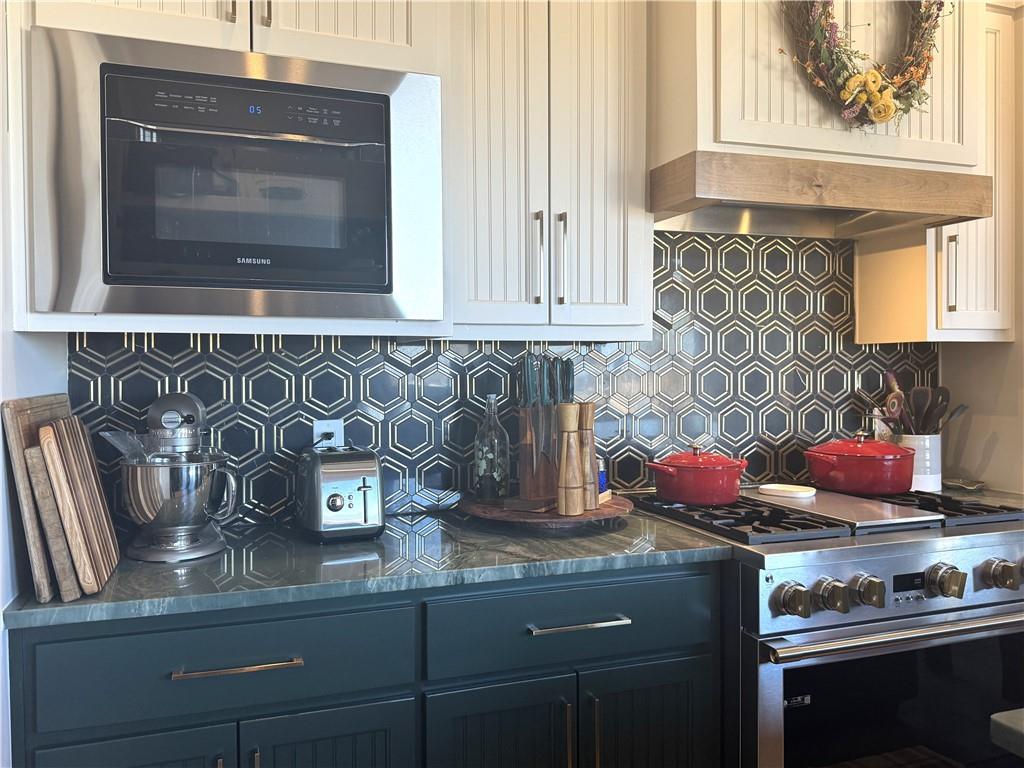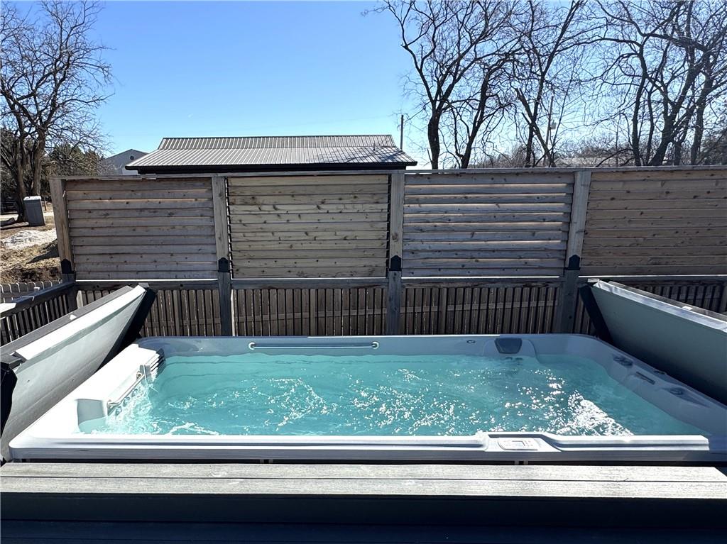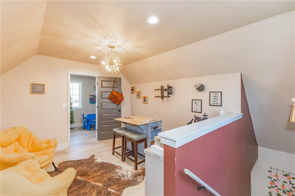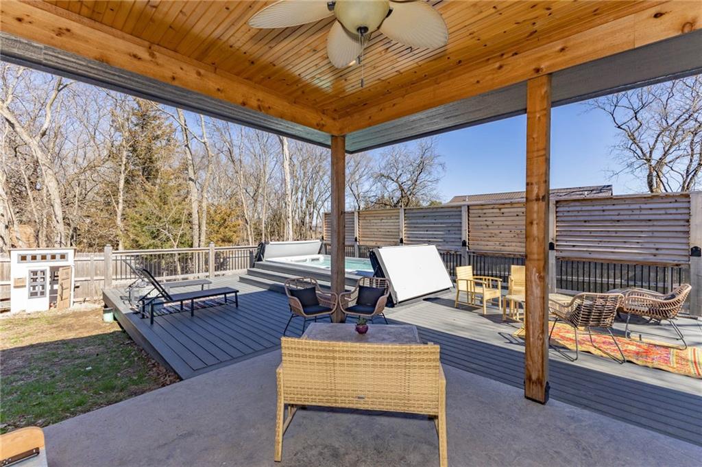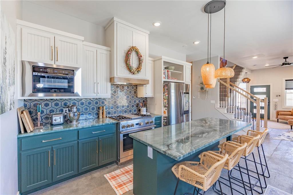This is truly a custom home, located within the gated community of Linn Valley Lakes. Nothing about this home is builder grade including design, quality, features, or style. Enter the home and you are treated to a beautiful gas fireplace with a stone face, concrete floors, and designer fixtures. 10 ft ceilings provide the open look and feel throughout the entire main level. The chef's kitchen includes high-end stainless-steel appliances, a gas stove, custom cabinets with brass handles and stunning green quartzite countertops. The quartzite is heat resistant has the look of marble, yet it is easier to maintain. Four can sit at the island, but there is room for a small table if you wish. The backsplash is black subway tile laid in a herringbone pattern on one side and a beautiful gold and black hexagon pattern on the other. As you leave the kitchen and head to the back door, there is a large pantry, a laundry room, and a mudroom. Get ready to feel pampered in the primary suite. The large bedroom has a feature wall and lots of natural light. The primary bath includes a quartzite vanity with double sinks and beautiful brass lighting. The shower is a work of art with 4 different tiles that blend to create something beautiful. A bidet? You bet! The main bath and the second bedroom are also on the main floor. Going up the stairs, you have gray carpeting and white wood trim with black iron balusters. The 3rd bedroom is a loft, and it has a walk-in closet. The fully fenced backyard has a resort feel with over 200 sq feet of covered porch and then decking extending out to the large swim spa. The jets can create a water flow for swimming, and it feels more like a pool than a spa. The detached garage has a bonus room upstairs that is heated and cooled by a mini split and makes a great office, craft room or simply a get-away space for kids (or adults). It would be impossible to re-create this home for the list price, so make plans to see this special home soon!