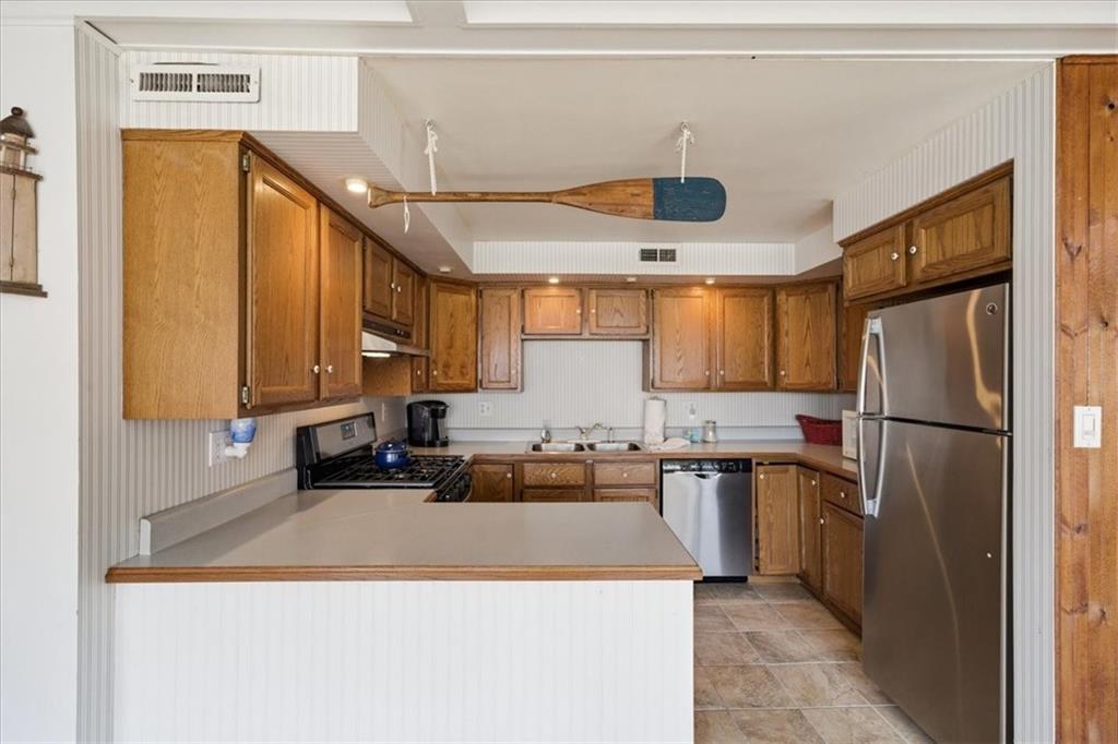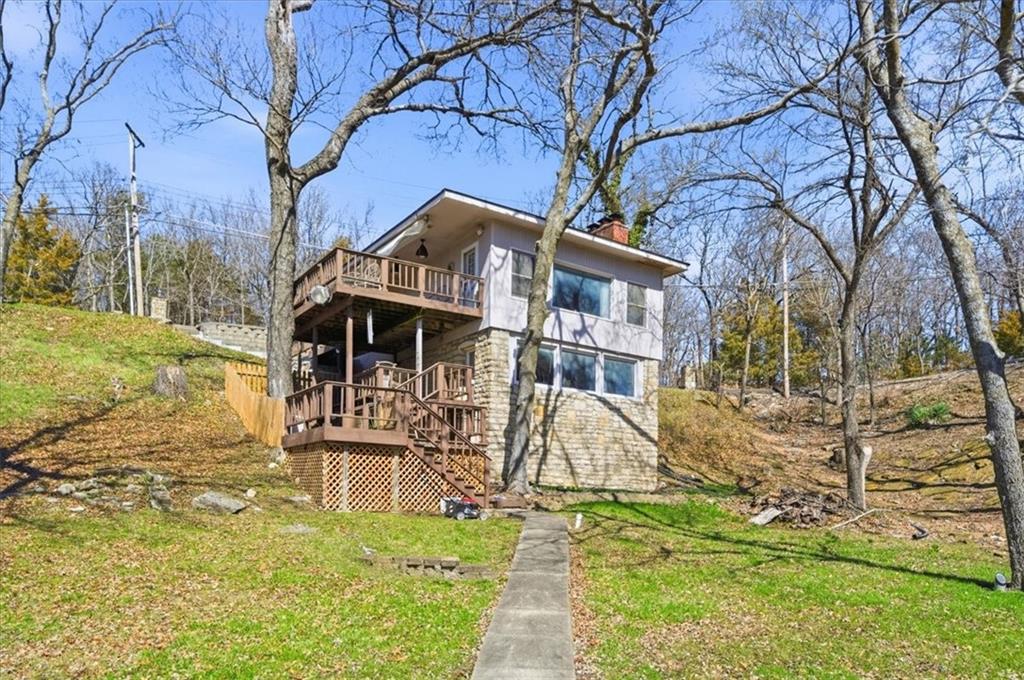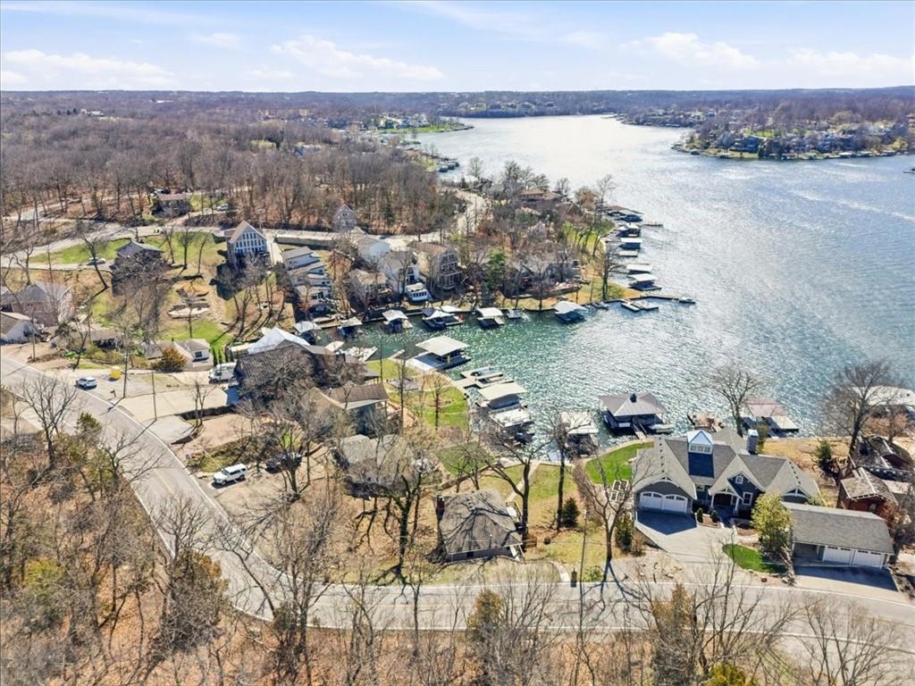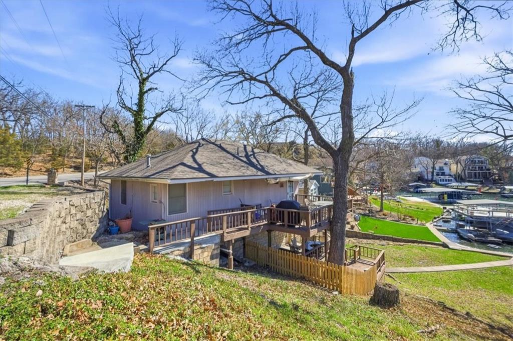 Great Tier 1 Lake Front property with double decker dock in desirable cove. Just under 1/4 acre, this space gives you the availability to move right in, remodel to your taste, or start fresh and build your dream lake home! Currently situated, the upper level features a spacious living room, full bathroom, and two bedrooms. Lower level features an additional living room, full kitchen, and additional full bath. Both levels do have exterior access with deck and patio. Lots of yard space for laying our or playing a set of corn hole!