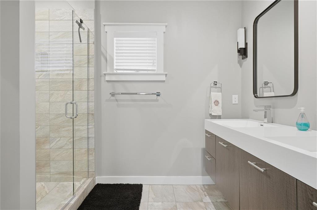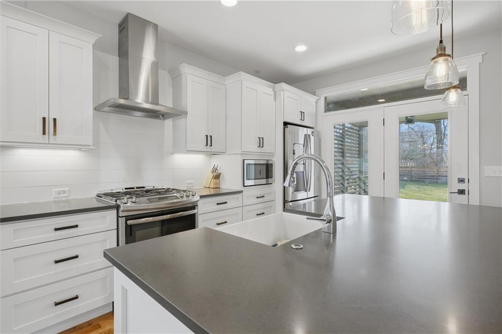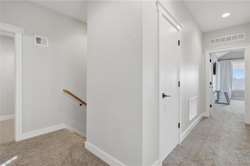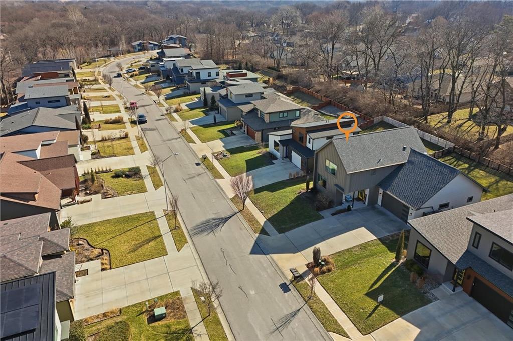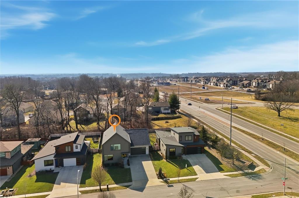 Beautiful modern two-story home featuring a unique and open floor plan designed for comfortable living and entertaining. The kitchen showcases a large island with quartz countertops, a white farmhouse sink, shiplap accents, gas range and Walk-in pantry. The home includes stunning hardwood floors, along with abundant built-in cabinetry for storage. Large windows throughout the home provide exceptional natural light, and the gas fireplace creates a warm, inviting living space. Additional highlights include a spacious three-car tandem garage with overhead storage and workbench area. The home also features a finished basement ideal for entertaining complete with a large dry- bar, island, full bathroom and an additional bedroom that could also serve as a private office, featuring full egress windows. The home also has bedroom level laundry room with skylight and utility sink. In the backyard you will find a covered patio with stamped concrete and a in-ground sprinkler system along with rain barrel. The HOA provides access to the Pavillion, splash park, play area, fire pit and greenspace. This home is also 15 minutes to Downtown or the KCI Airport.