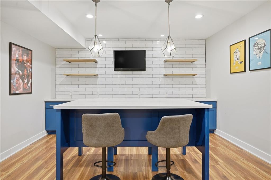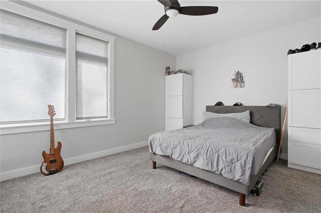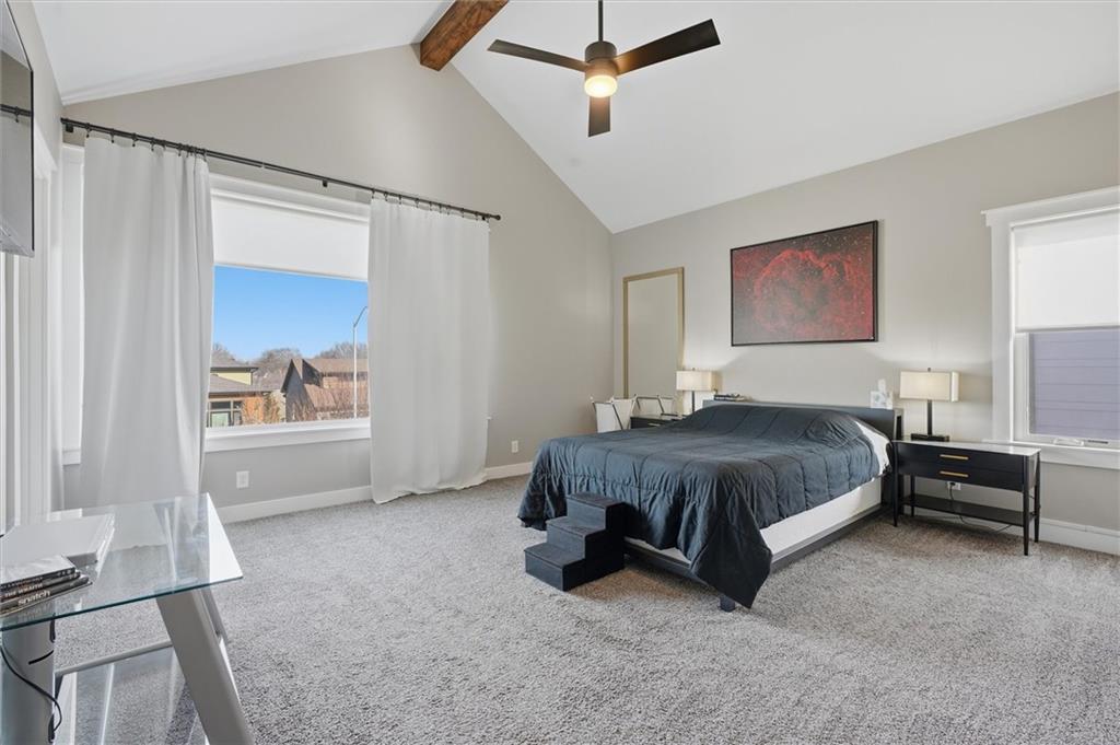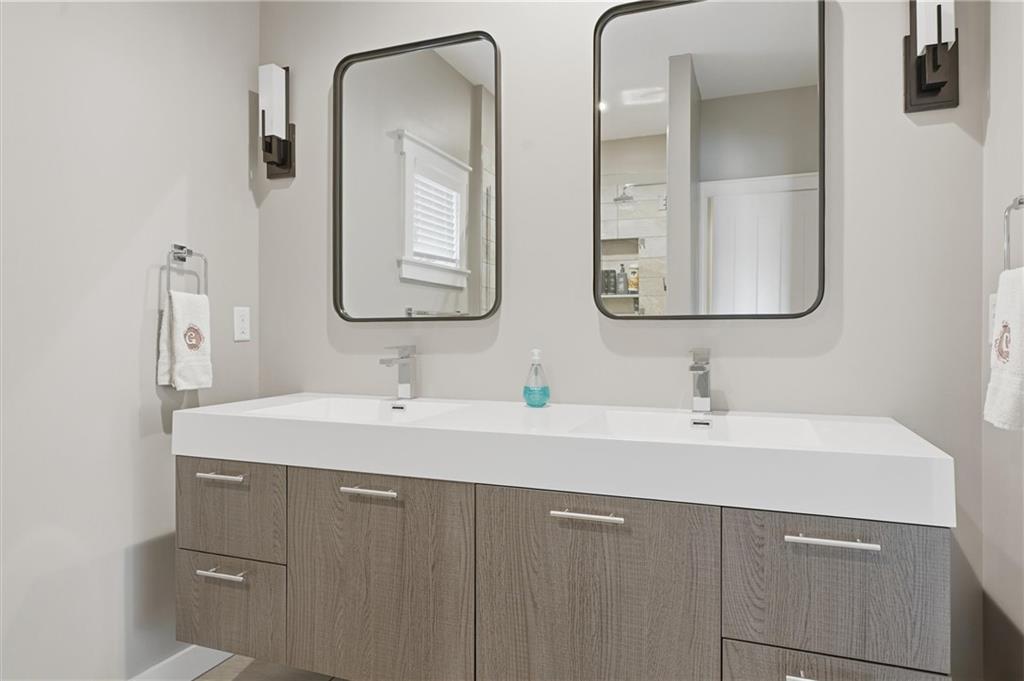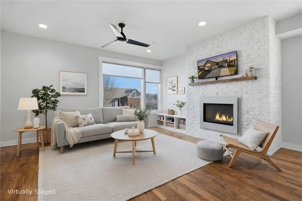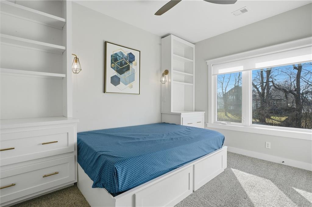 Beautiful modern two-story home featuring a unique and open floor plan designed for comfortable living and entertaining. The kitchen showcases a large island with quartz countertops, a white farmhouse sink, shiplap accents, gas range and Walk-in pantry. The home includes stunning hardwood floors, along with abundant built-in cabinetry for storage. Large windows throughout the home provide exceptional natural light, and the gas fireplace creates a warm, inviting living space. Additional highlights include a spacious three-car tandem garage with overhead storage and workbench area. The home also features a finished basement ideal for entertaining complete with a large dry- bar, island, full bathroom and an additional bedroom that could also serve as a private office, featuring full egress windows. The home also has bedroom level laundry room with skylight and utility sink. In the backyard you will find a covered patio with stamped concrete and a in-ground sprinkler system along with rain barrel. The HOA provides access to the Pavillion, splash park, play area, fire pit and greenspace. This home is also 15 minutes to Downtown or the KCI Airport.
