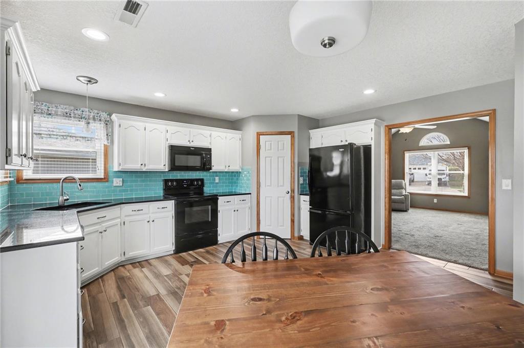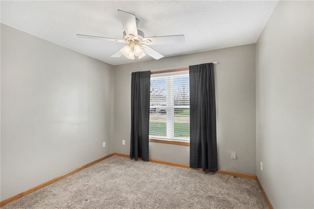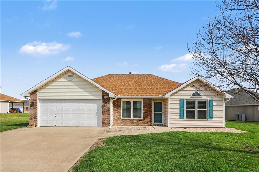 Beautiful ranch that shows like new! The inviting living room features vaulted ceilings and a cozy fireplace, creating the perfect space to relax or entertain. The kitchen offers granite countertops, tile backsplash, and a spacious walk-in pantry. The primary suite includes a tray ceiling, walk-in closet, and private bath with granite countertops. Newer windows and a newer back patio door provide added efficiency, and wood blinds are featured throughout the home. Step outside to enjoy the covered patio and fenced backyard — ideal for gatherings or quiet evenings at home. You’ll love the extra storage with an 8x20 space above the garage complete with lighting. Bonus: An 8-person storm shelter in the garage offers added peace of mind to keep your family safe.