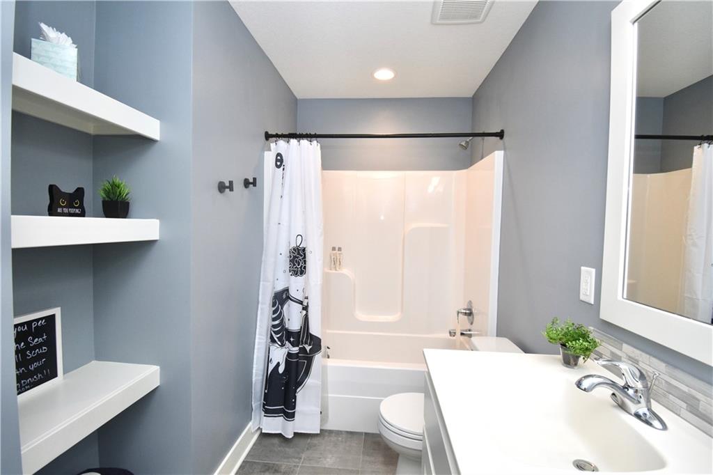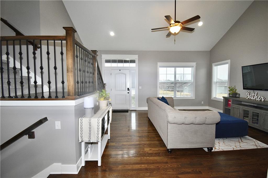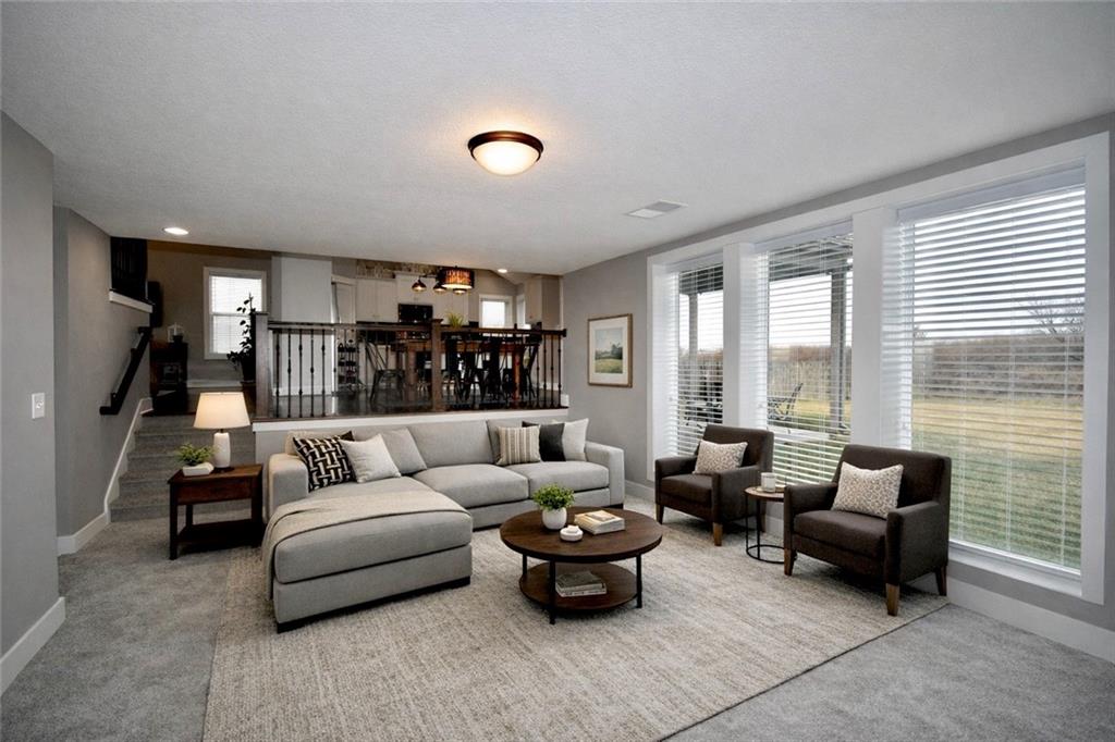 Welcome home to this unique 2 Story/Atrium Floor plan built by Aspen! You’ll love this layout! Walk-in to the Hearth/Flex Room, spacious kitchen w/Granite counter tops, painted cabinets, stainless appliances, large island, pantry, kitchen window and hardwood floors. Kitchen dining area open to 2nd living area below, w/fireplace floating shelves & accents wall. Large mud area and half bathroom w/granite just off garage. Upstair staircase w/wrought iron spindles leads to all bedrooms and laundry room. Primary bathroom with double vanity, granite counter tops, single STANDING TUB, tiled walk-in shower, tiled floors, and walk in closet. Secondary bedroom features double vanity, titled floor & built-ins. Finished basement and unfinished area for storage. Movie Screen Projector, Leather Reclining Chairs could be purchased separately. Just installed new carpet in living area, bedrooms, stair carpet & fresh paint! Covered patio, Sprinkler System, underground INVISIBLE FENCE, currently yard backs to greenspace/land!! ATTEN VETERAN BUYERS, Seller has VA ASSUMABLE LOAN ***APROX. 2.875% ***(WOW HUGE SAVINGS) HOA offers playground, large swimming pools & walking trials. Just 15 minutes to KCI Airport & aprox. 15-20 minutes to Downtown. Liberty School District, Liberty North High School. Close to Liberty-KC Shops & Restaurants! PHOTOS COMING SOON!!