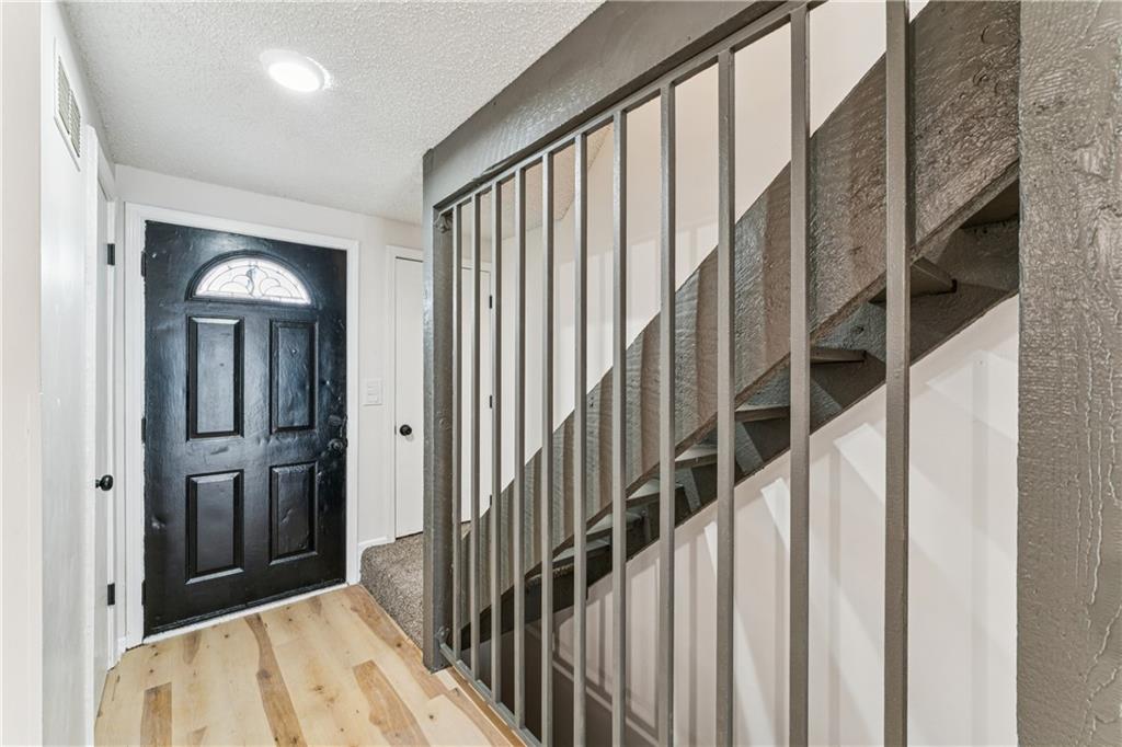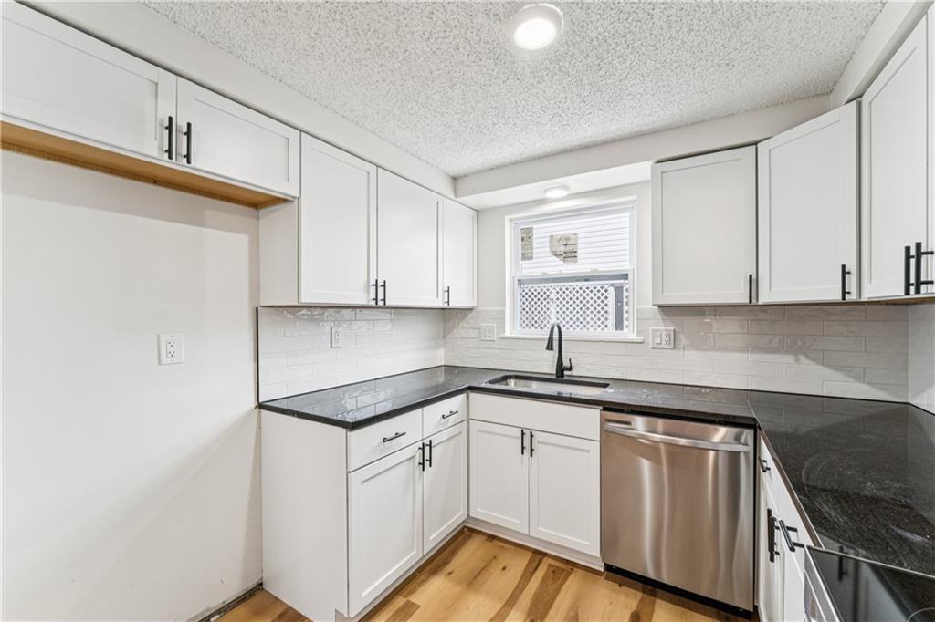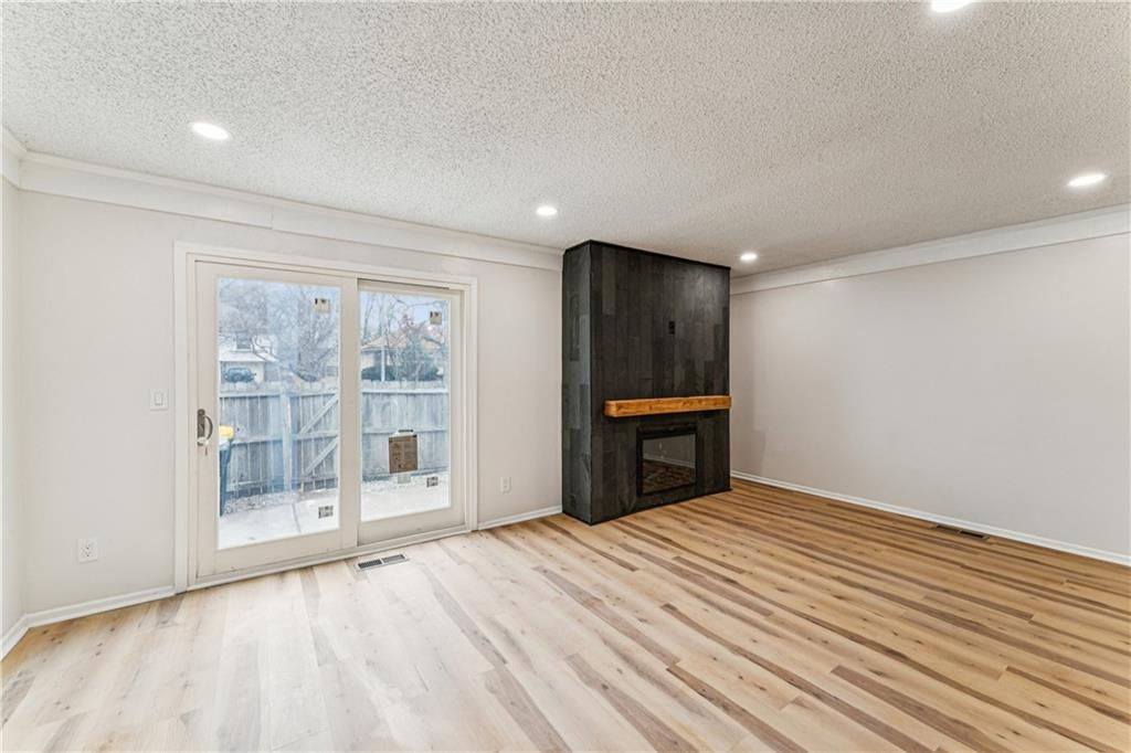 Beautifully updated townhome with a timeless contemporary design and bright, open feel throughout. The main level showcases light oak LVP flooring, sleek black hardware and lighting, and a slate-tiled electric fireplace that anchors the living space. The fully renovated kitchen features brand-new cabinetry, granite countertops, a classic subway tile backsplash, and stainless steel appliances. Upstairs, spacious bedrooms with vaulted ceilings continue the light and airy aesthetic, while the updated main bathroom offers new tile floors and surrounds, a stylish vanity, and modern fixtures. The finished basement provides a versatile bonus room perfect for a home office, rec room, or non-conforming bedroom. In addition to the cosmetic updates, the home includes a new furnace, A/C unit, water heater, and energy-efficient windows. Enjoy maintenance-free living with access to a pool, park space, and common areas; All the perks of homeownership without the hassle.