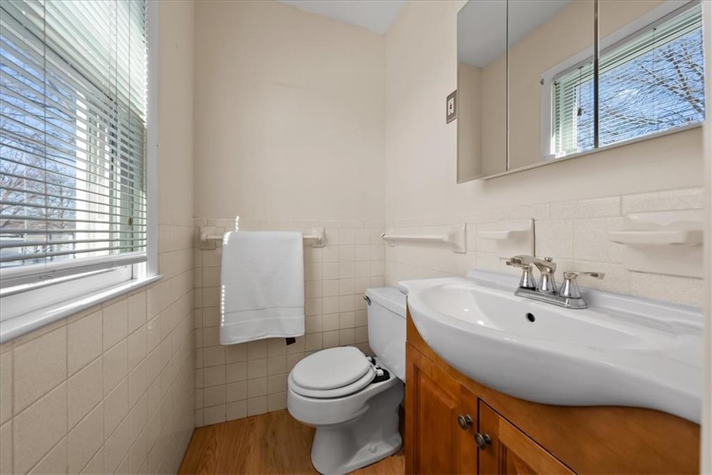 Welcome to this well-cared-for ranch featuring newer updates throughout. The main level offers an inviting open floor plan with an updated kitchen that flows easily into the living and dining areas—perfect for everyday living and entertaining. New interior paint in main area of home, refinished hardwood floors throughout main floor, and newer carpet on the stairs to the basement give the home a fresh, move-in ready feel. The main floor includes three comfortable bedrooms, one full bath, and a convenient half bath in the primary bedroom. The kitchen has granite counters and quality cabinets that is open to the living area. The large finished basement provides excellent additional living space with a media or recreation area and an additional full bath, making it ideal for movie nights, guests, or a second living area. Step outside to enjoy the huge backyard with a deck and storage shed, offering plenty of room for relaxing, entertaining, or gardening. A two-car garage adds convenience and storage. Located just minutes from shopping, dining, and major highways, this home combines space, updates, and a fantastic location.