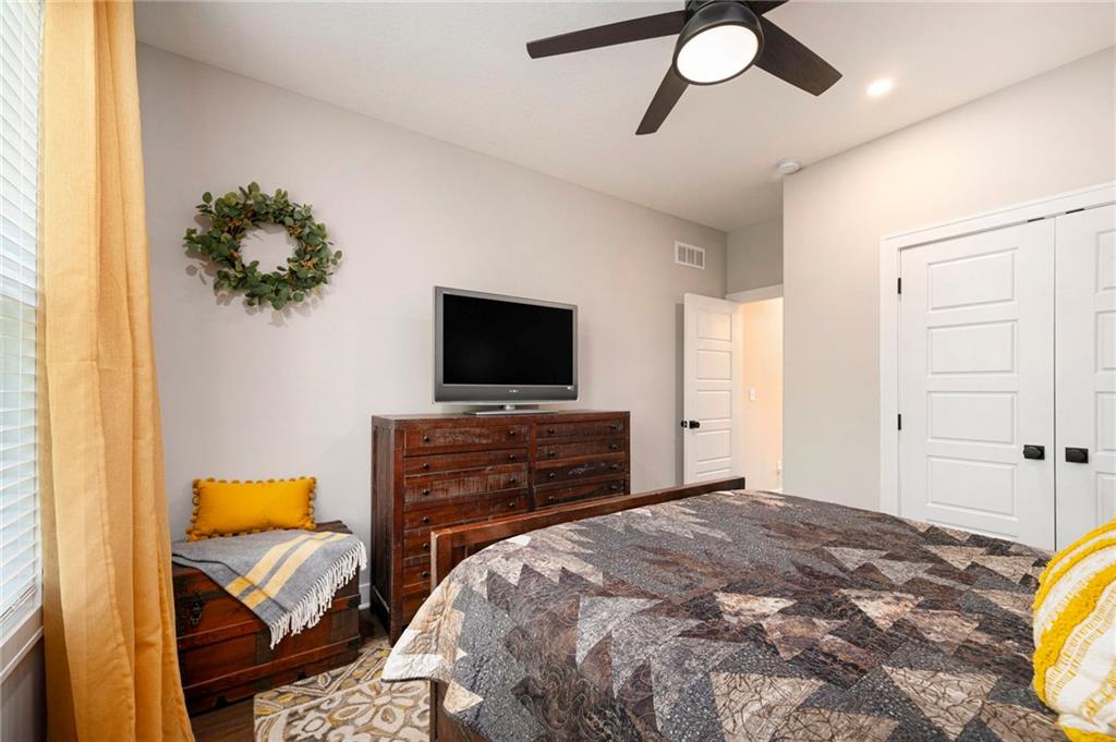 ONLY 4 YEARS NEW! TOO MANY upgrades to list, see Upgrades and Amenities Sheet and Receipts under Supplements. NO DOGS OR ANIMALS, NO SMOKING. Better than New Reverse 1.5 Story Walkout with 5 bedroom, plus a lower level office or workout room on a 1.01 acre lot. Oversized kitchen cabinets with spice drawers and various pullouts, HUGE, Tall walk-in Kitchen Pantry. Upgraded granite countertops in kitchen, 3 bedrooms on main floor and 2 Bedrooms upstairs bathrooms. Master Bedroom has vaulted ceiling and fantastic view of greenspace overlooking 1.1 acre. Master Bathroom has a large shower with 2 Rainforest Shower Heads, vanity and makeup area. 24 ft deep 3-car Garage. MULTIGENERATIONAL: Lower Level has HEATED ceramic Floors in Kitchen and Dining area! Could be an apartment with separate entry someone could live in with beverage & wine fridge that stays, dishwasher too. LL Custom Cabinets and Cabinetry. Workout room, 2 bedrooms and full hall bath with tub over whirlpool jetted tub. Upgraded stair carpet. Upgraded OUTSIDE PUCK LIGHTING that you can turn various colors. CIRCLE DRIVEWAY!! Extra Height on vaulted living room and kitchen with floor to ceiling fireplace and bookshelves/cabinets. Garage: Smart Garage Door Openers, Enlarged to 33 ft wide x 22 ft deep. 2 hard wired cameras in front. Blink Doorbell, fingerprint front door lock. Peaceful and serene, Close enough to downtown Oak Grove while being surrounded by green oasis backing to GREENSPACE. 10 min to Blue Springs…close to Lee's Summit, downtown and I-70. There is room to put an outbuilding, but it has to match the exterior of the house.