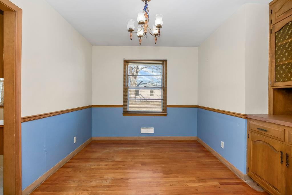 LOOKING FOR A GREAT OPPORTUNITY IN A CONVENIENT CENTRAL LOCATION? HERE IT IS! This home features 2 bedrooms and 1 full bathroom on main level with a 3rd non-conforming bedroom and 1 full bathroom in the basement. Original hardwoods throughout the main level will gleam when refinished. The home is south facing so natural light pours in. New paint throughout will only highlight this feature. A lovely dining room with a built-in connects to a nice-sized kitchen with tons of cabinet space and a built in office nook. There are multiple closets conveniently placed throughout the main level for added storage. Additional features of this home are the oversized garage,3 lane driveway, concrete patio off garage, fenced in backyard, storage shed, nearby shops and restaurants as well as highway access. This is the opportunity to buy in this desirable area affordably and add your own personal touches over time!!