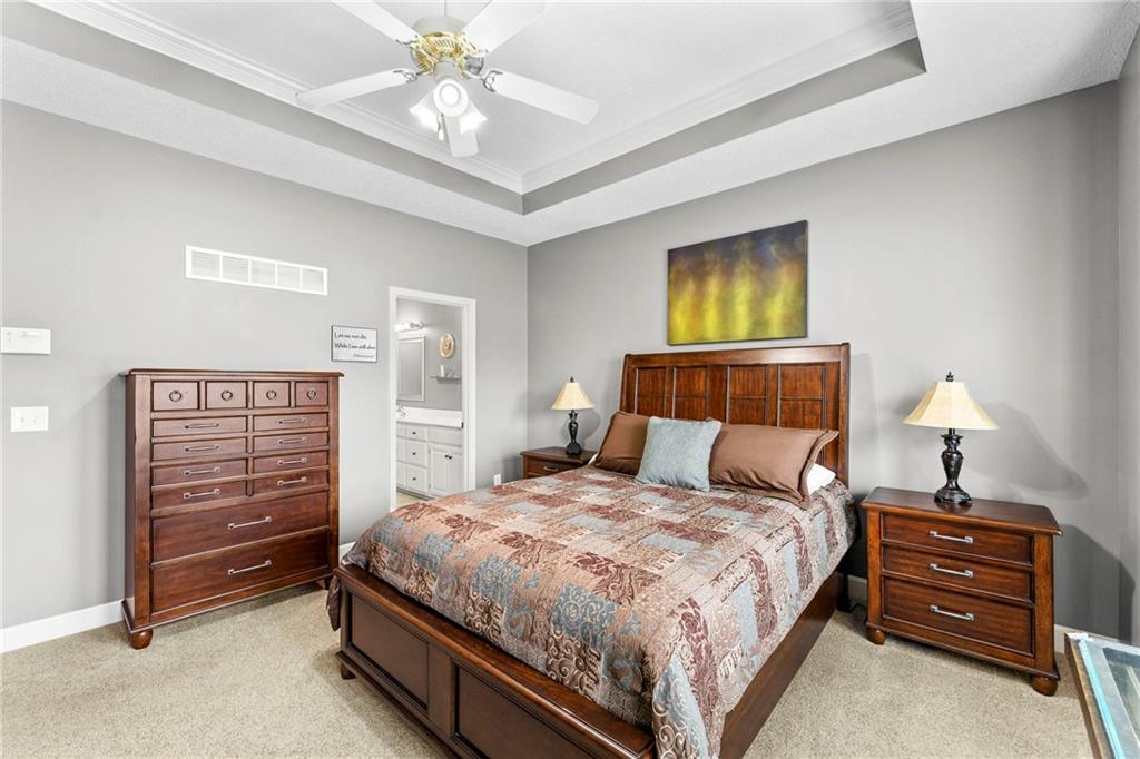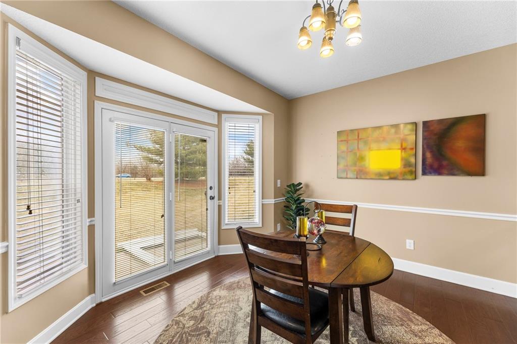 Welcome home to this well-maintained ranch in the desirable Villas of Northbrook subdivision! This 2-bedroom, 2-bathroom home offers almost 1550 square feet of MAIN level living space, including a spacious 1,492 sq ft of unfinished lower level space -- perfect for a REC room, home office, additional living area or bedroom and bathroom. The open layout features a comfortable main floor with soaring ceilings, engineered hardwood floors, main floor laundry and lots of natural light. Spacious kitchen with granite countertops, painted cabinets, stainless steel appliances and eat in kitchen make this home perfect for entertaining. Primary bedroom leads into the spacious primary bathroom with a double sink, oversized walk-in closet and shower with tile surround. Step outside to your private patio, ideal for relaxing or entertaining guests. The attached 2-car garage provides convenience and ample storage. Located in the Liberty School District with a new water heater in 2024 and a new furnace and A/C in 2019! Don't miss this opportunity to enjoy single-story living with room to grow in one of Kansas City's established communities with lawn and snow removal included in the HOA fee. Fridge, Washer and Dryer all STAY!
